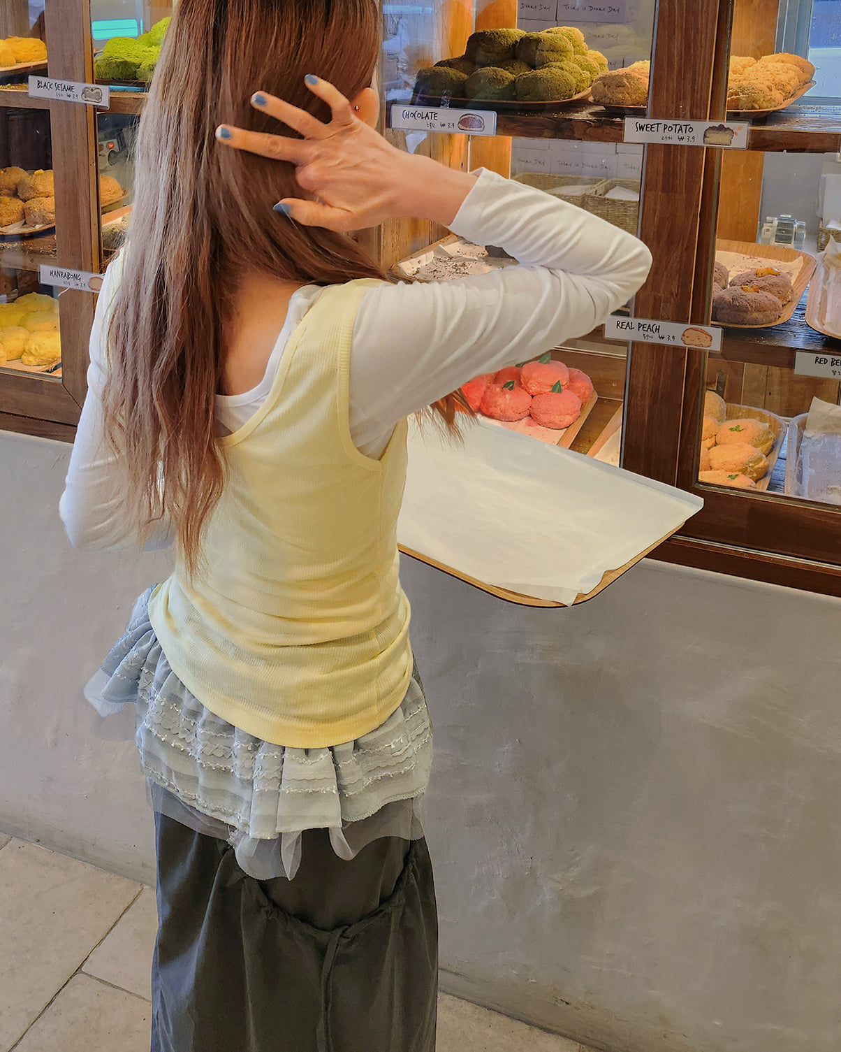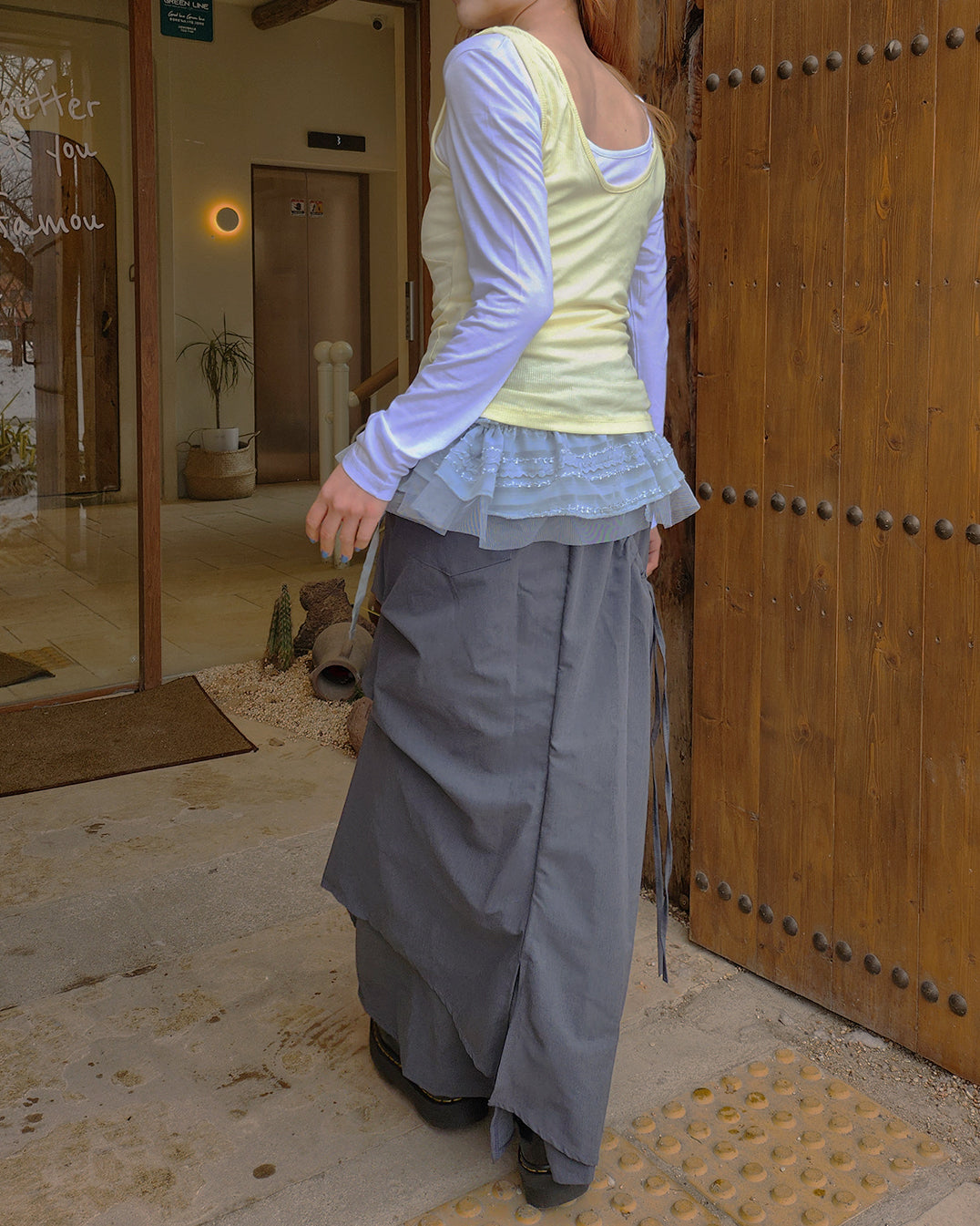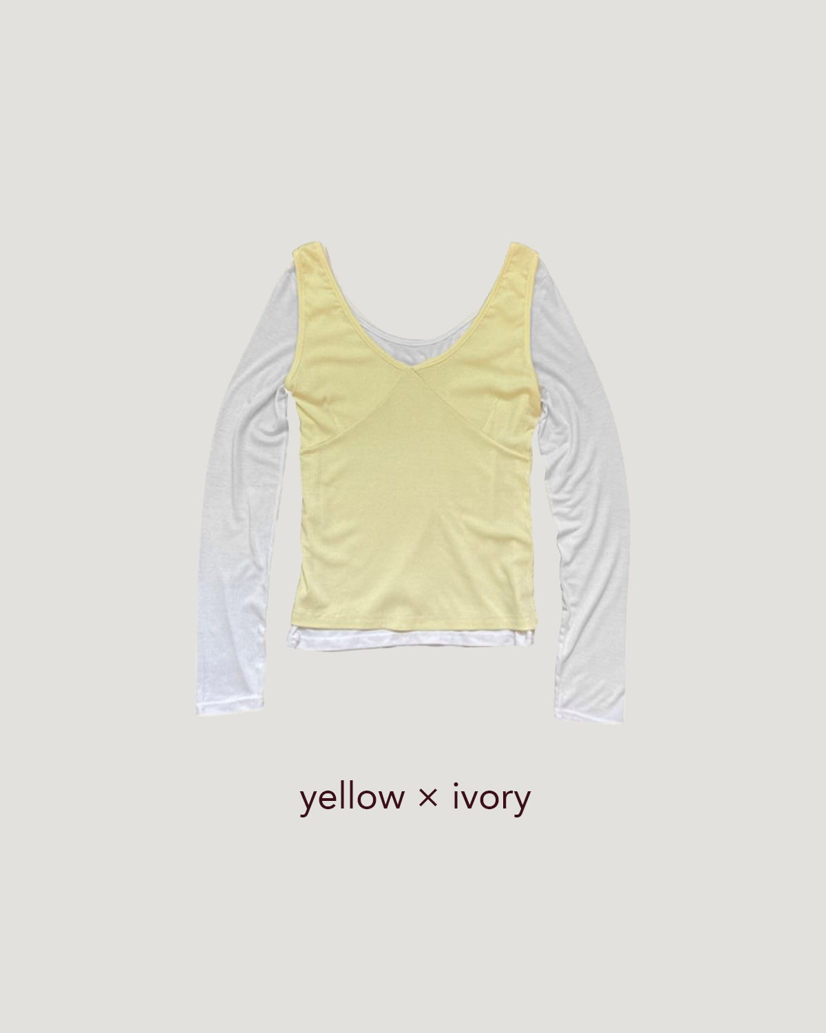 レイヤードスタイルが簡単に完成するノースリーブと長袖トップスの2点セットアイテム。