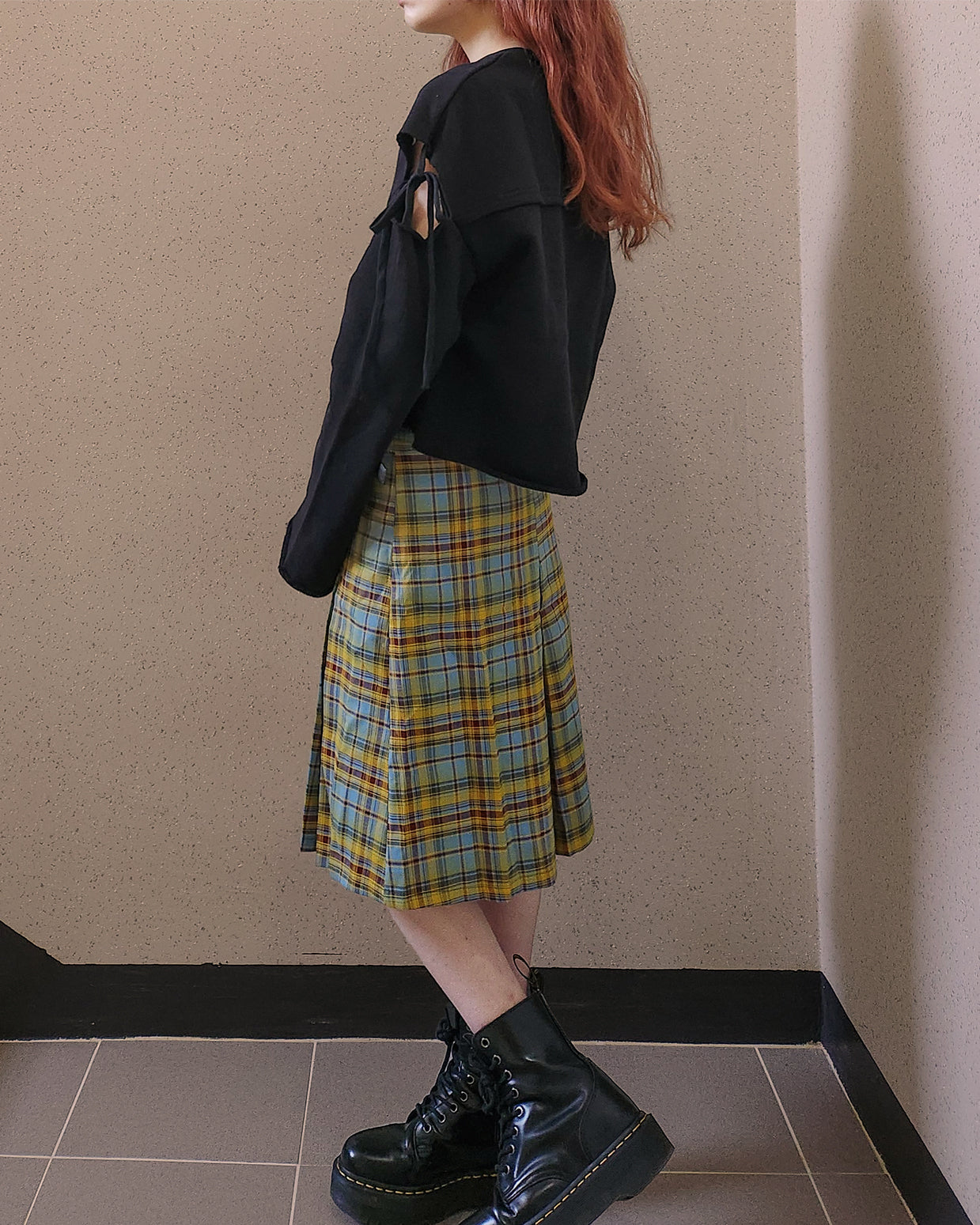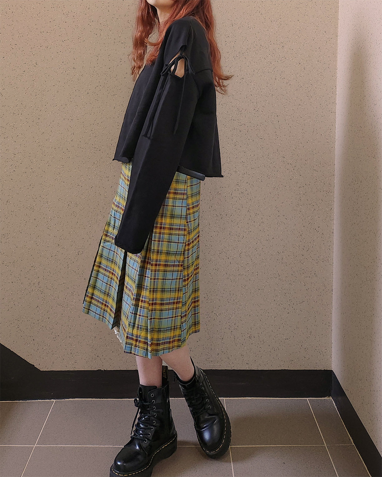 カットアウト部分にリボンが施されており、カジュアルガーリーな一着。