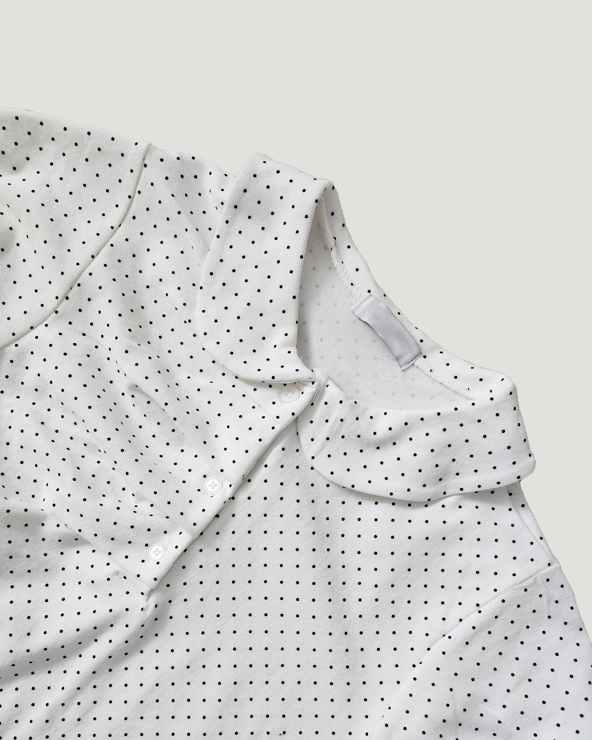 トレンドのドット柄とパフスリーブと丸襟がレトロで可愛いトップス。