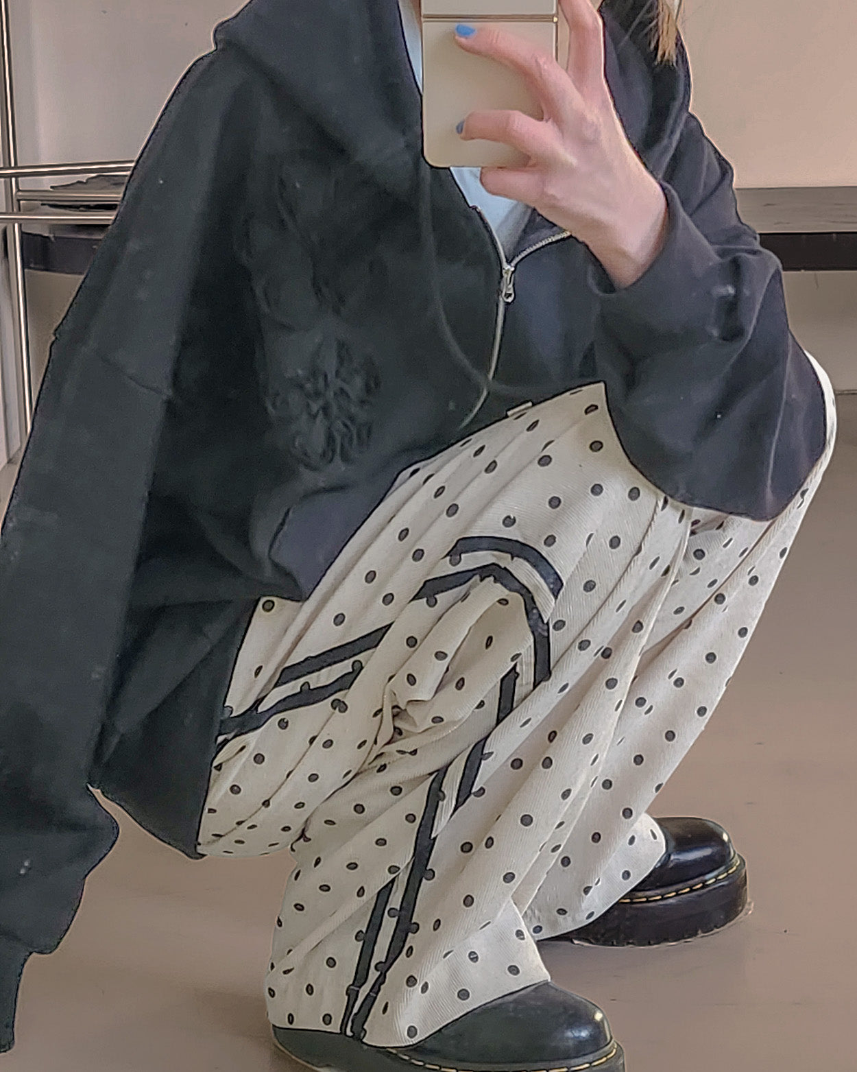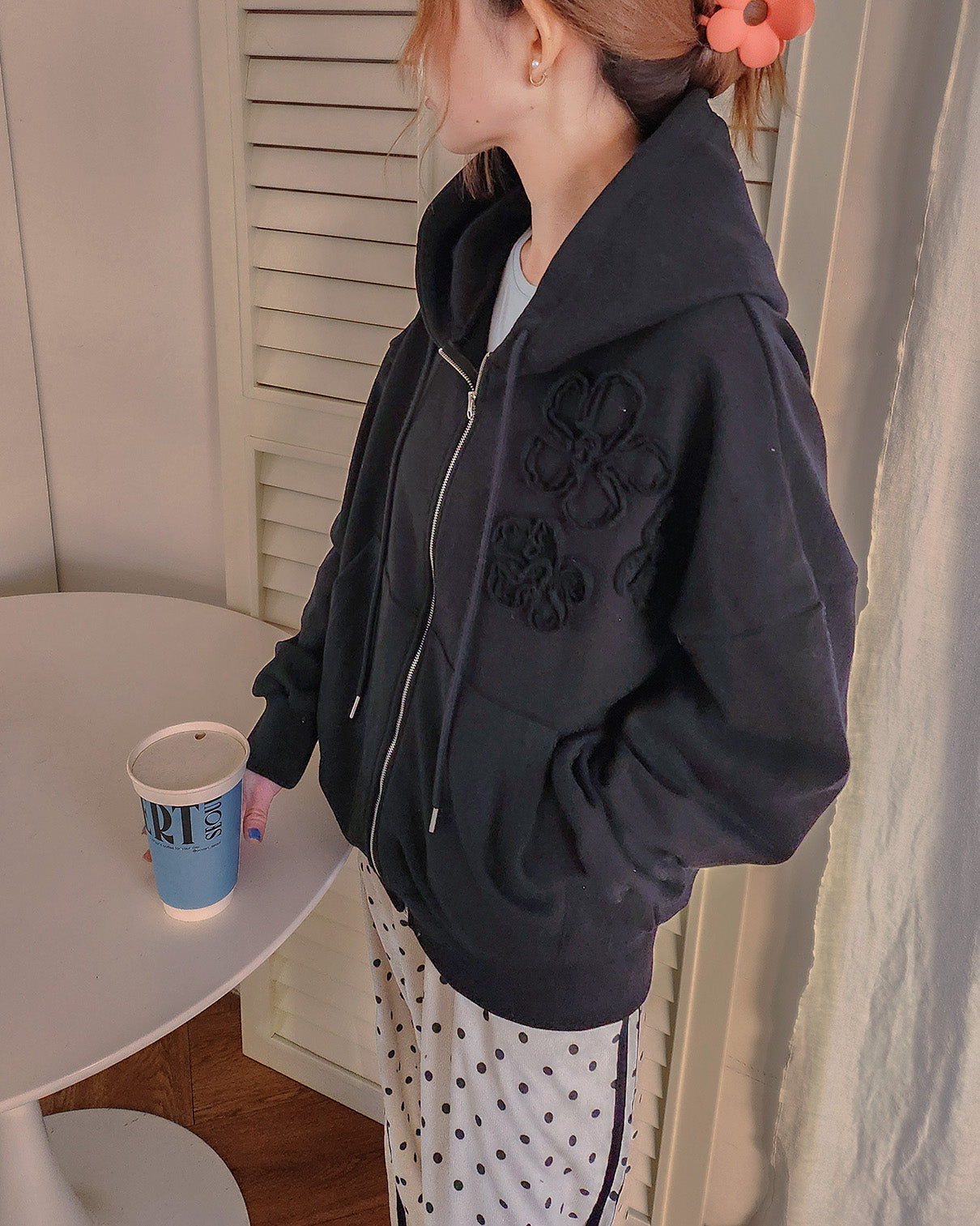 flower motif sweat zip hoodie