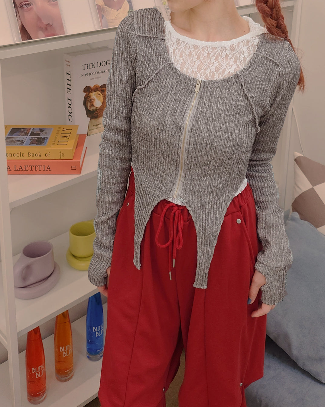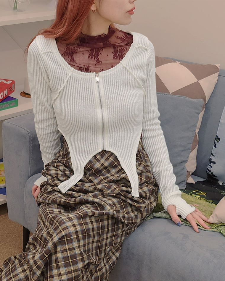 front zip rib garter top