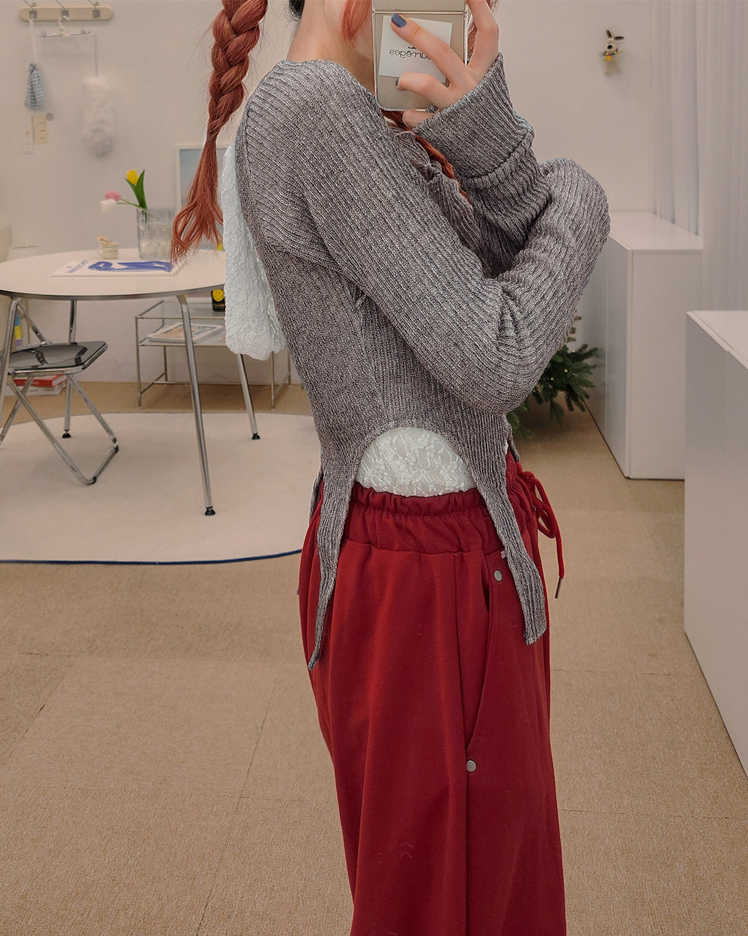 袖にはトレンドのフィンガーホール付きで、手元にさりげないアクセントを。