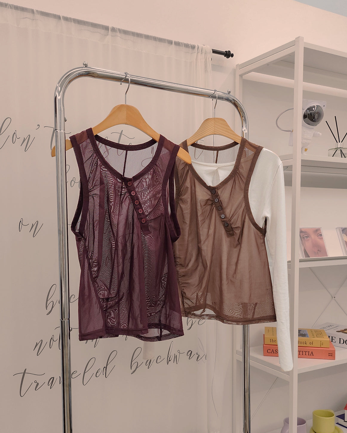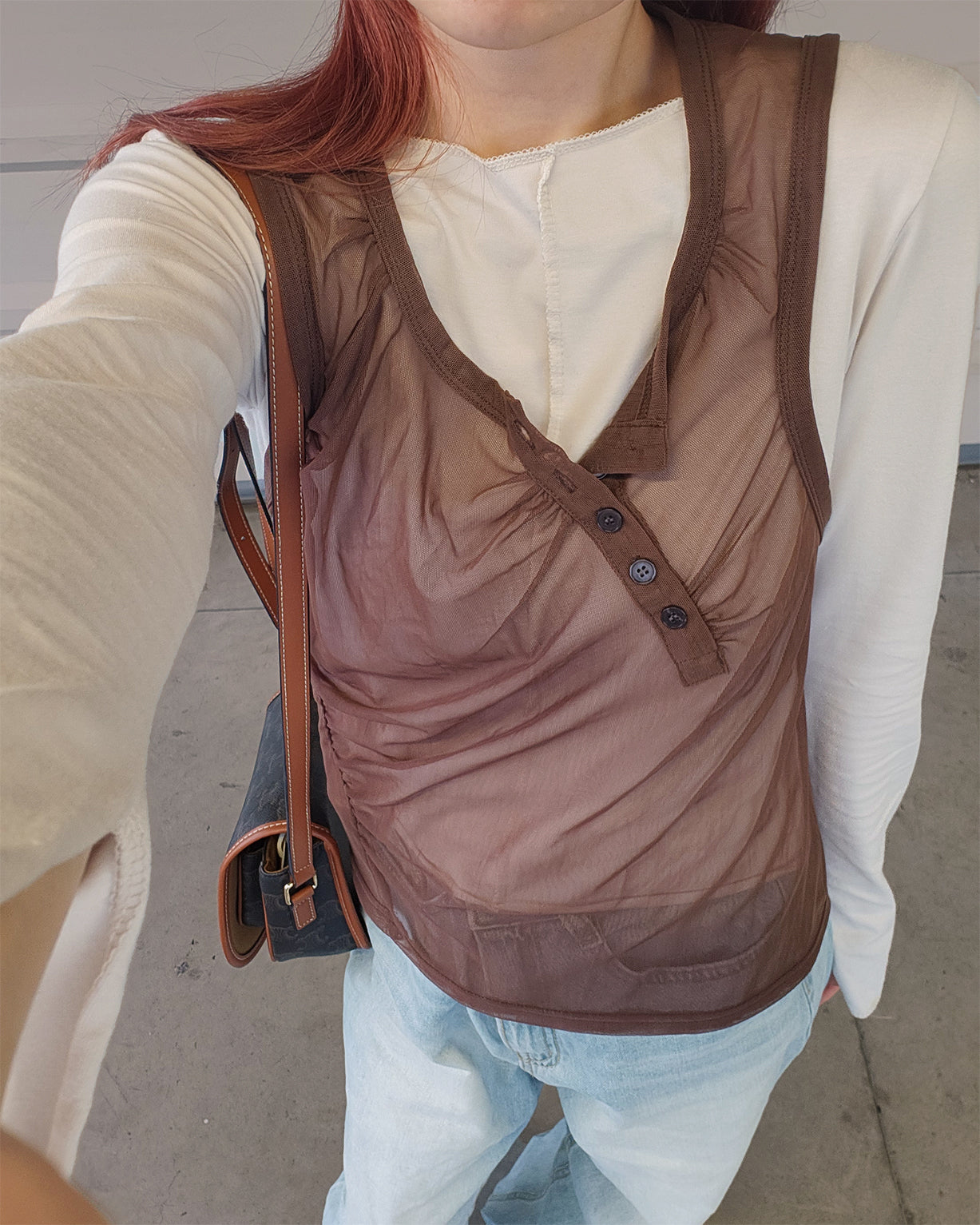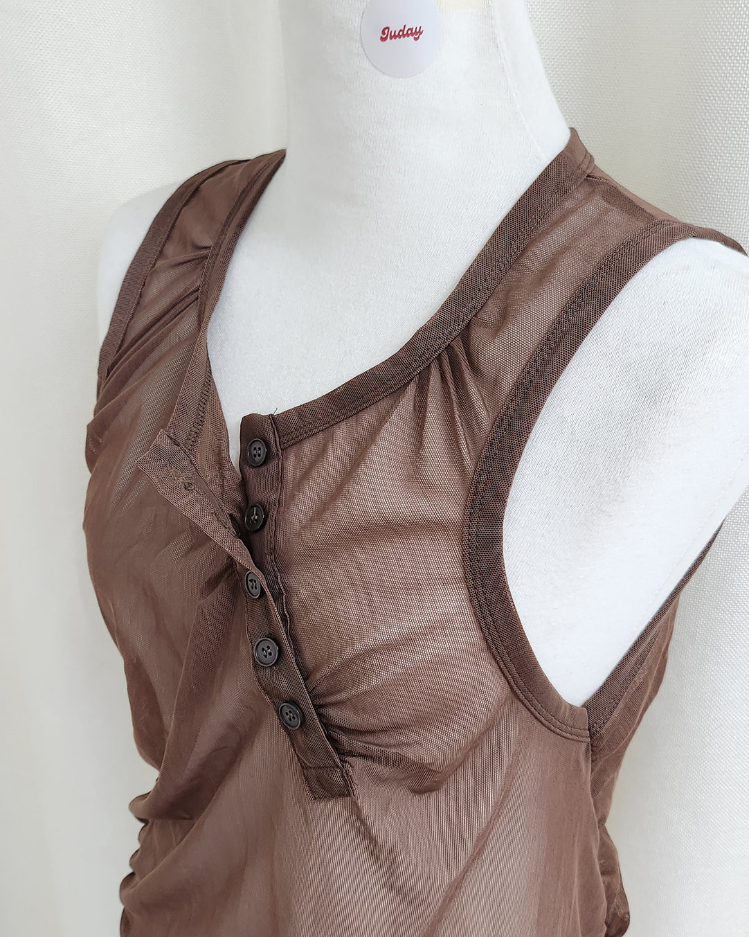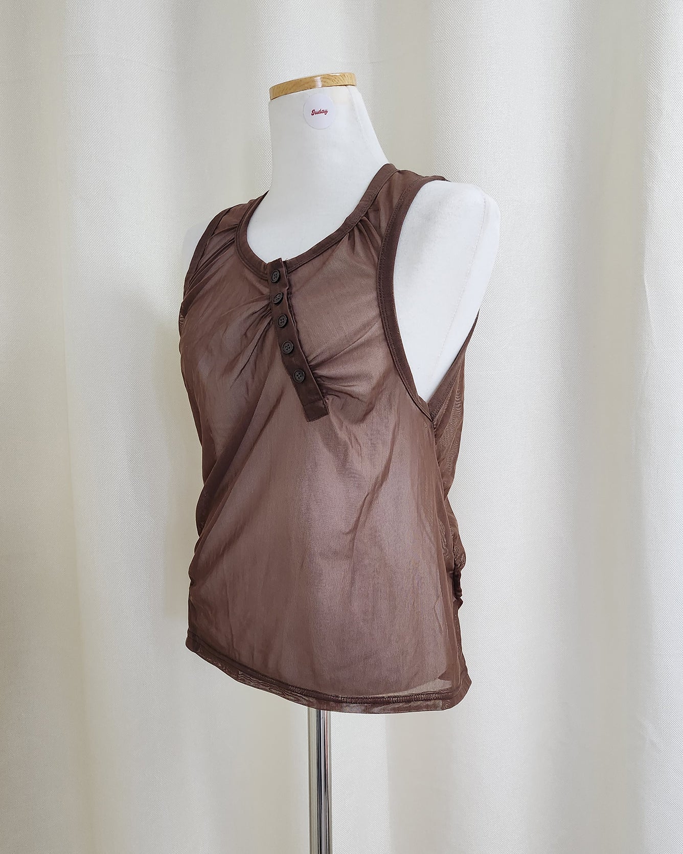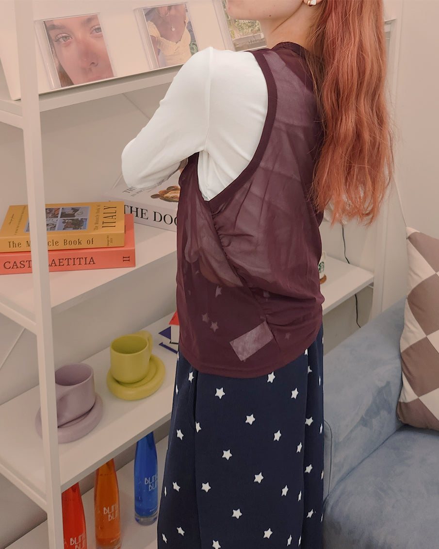 henry neck sheer sleeve less top