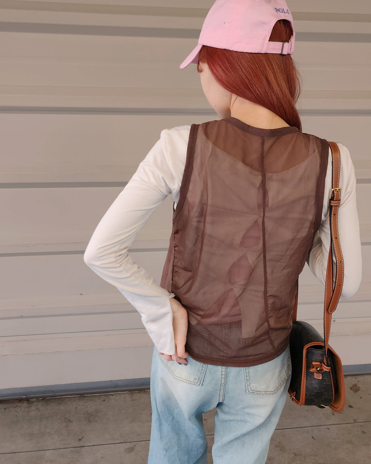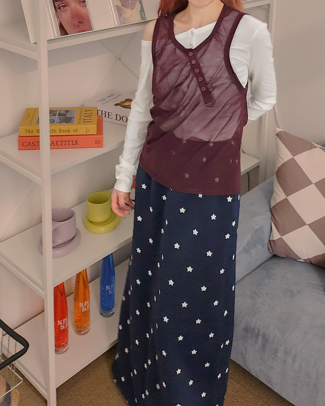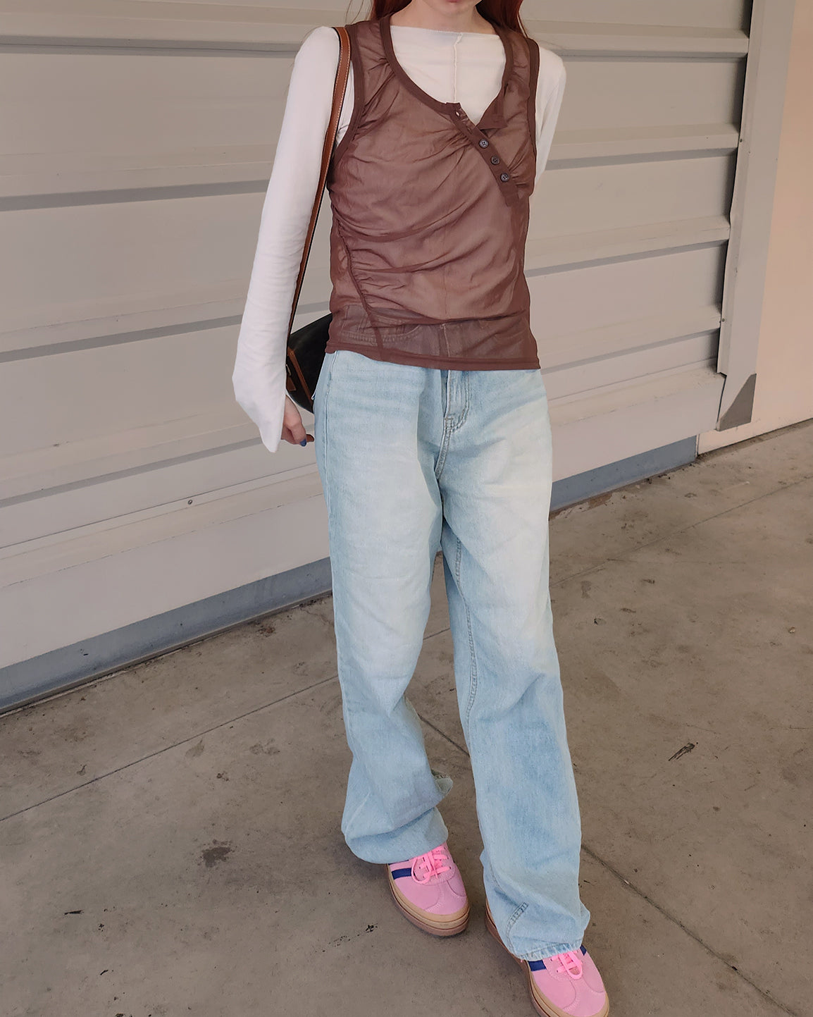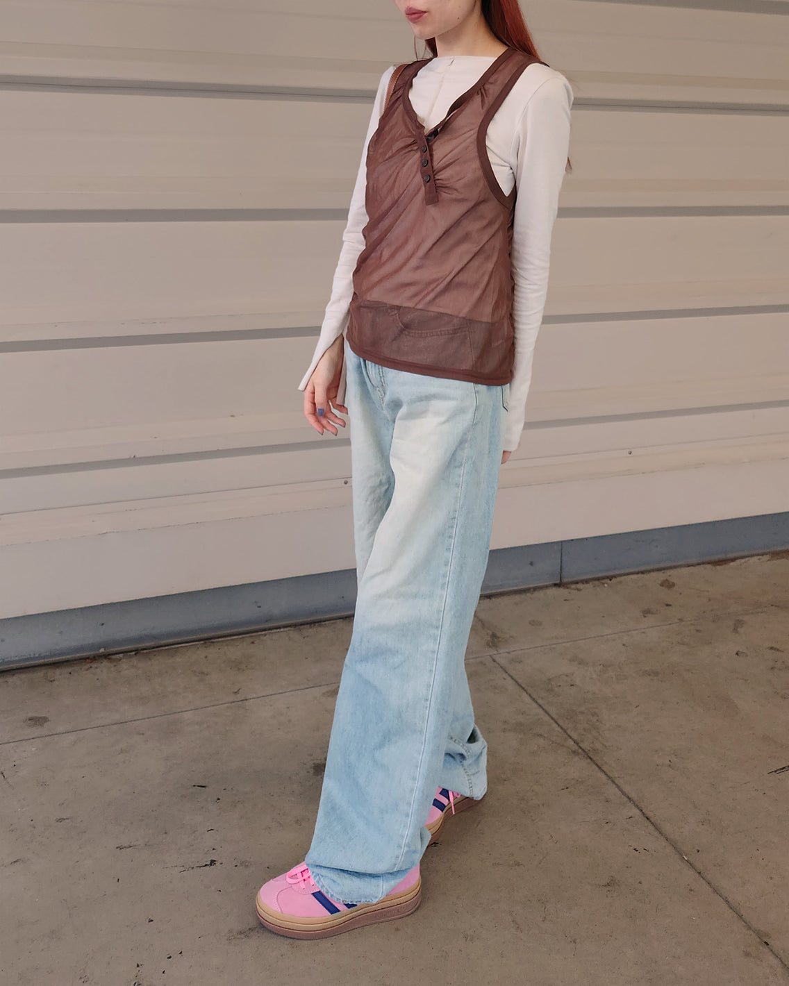 henry neck sheer sleeve less top