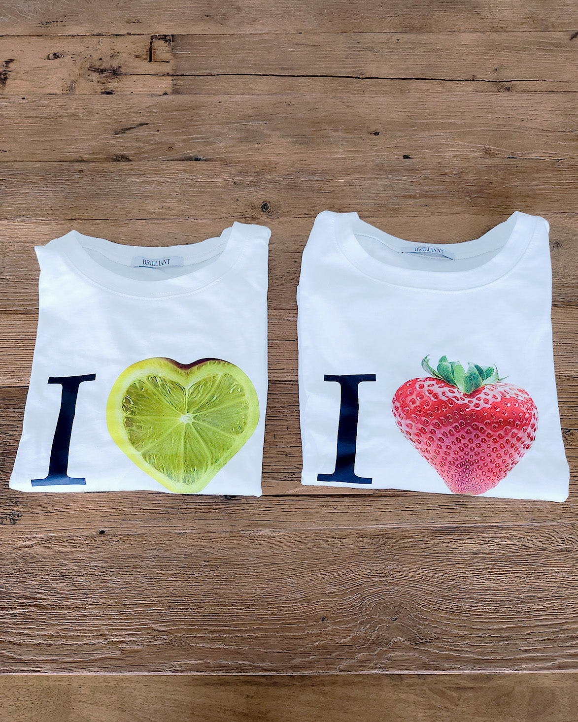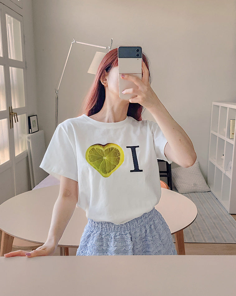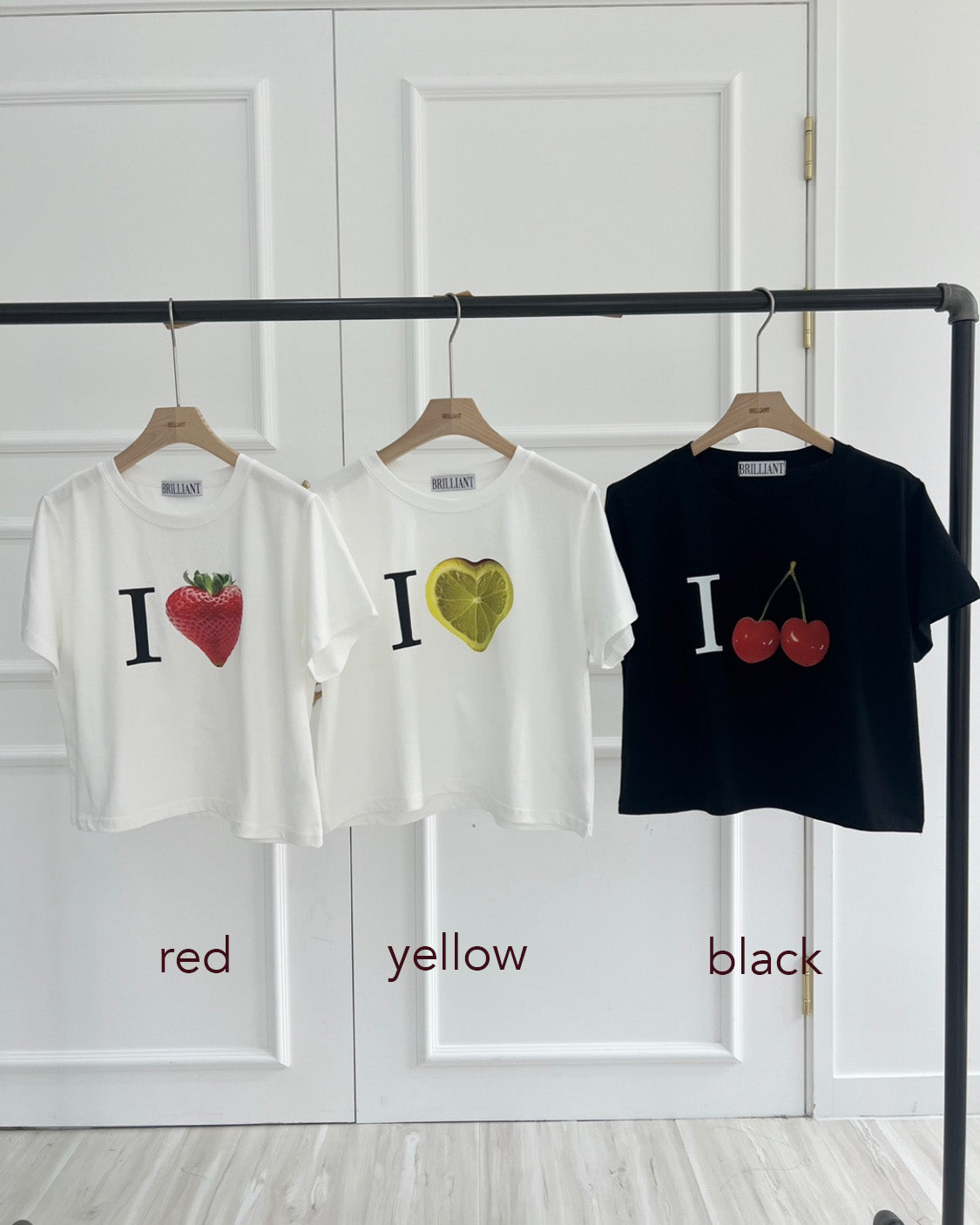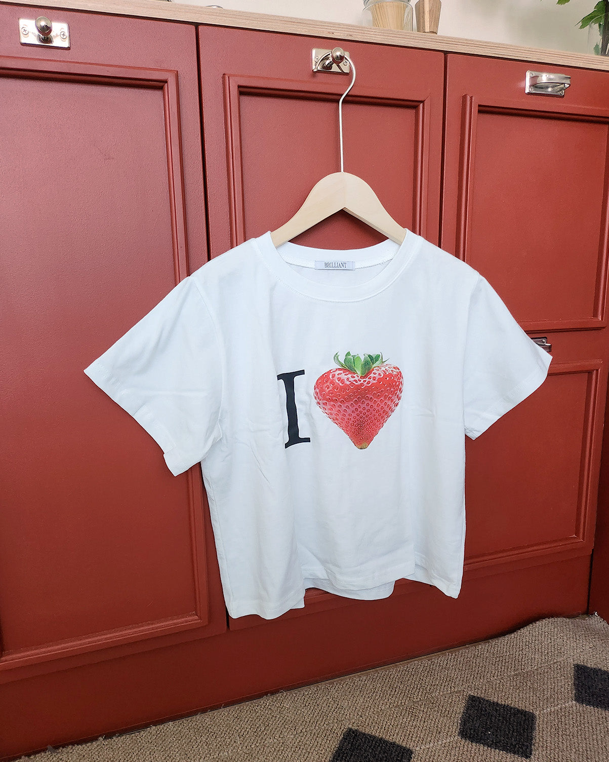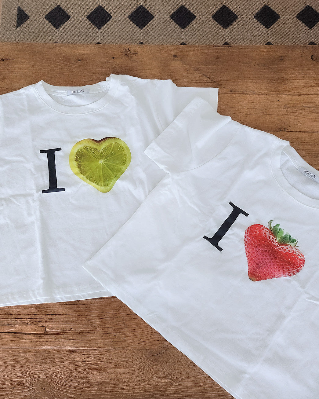 キャッチーなフルーツモチーフがポイントのTシャツ。