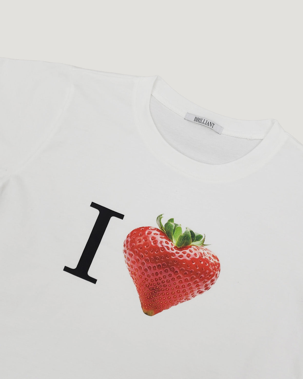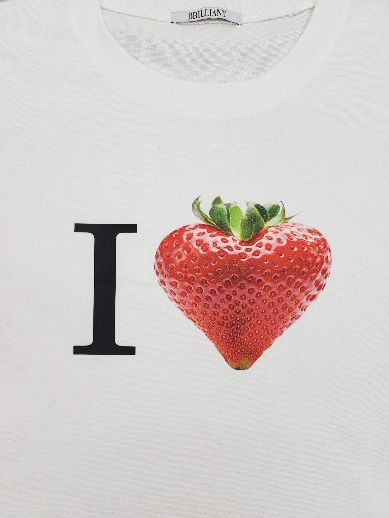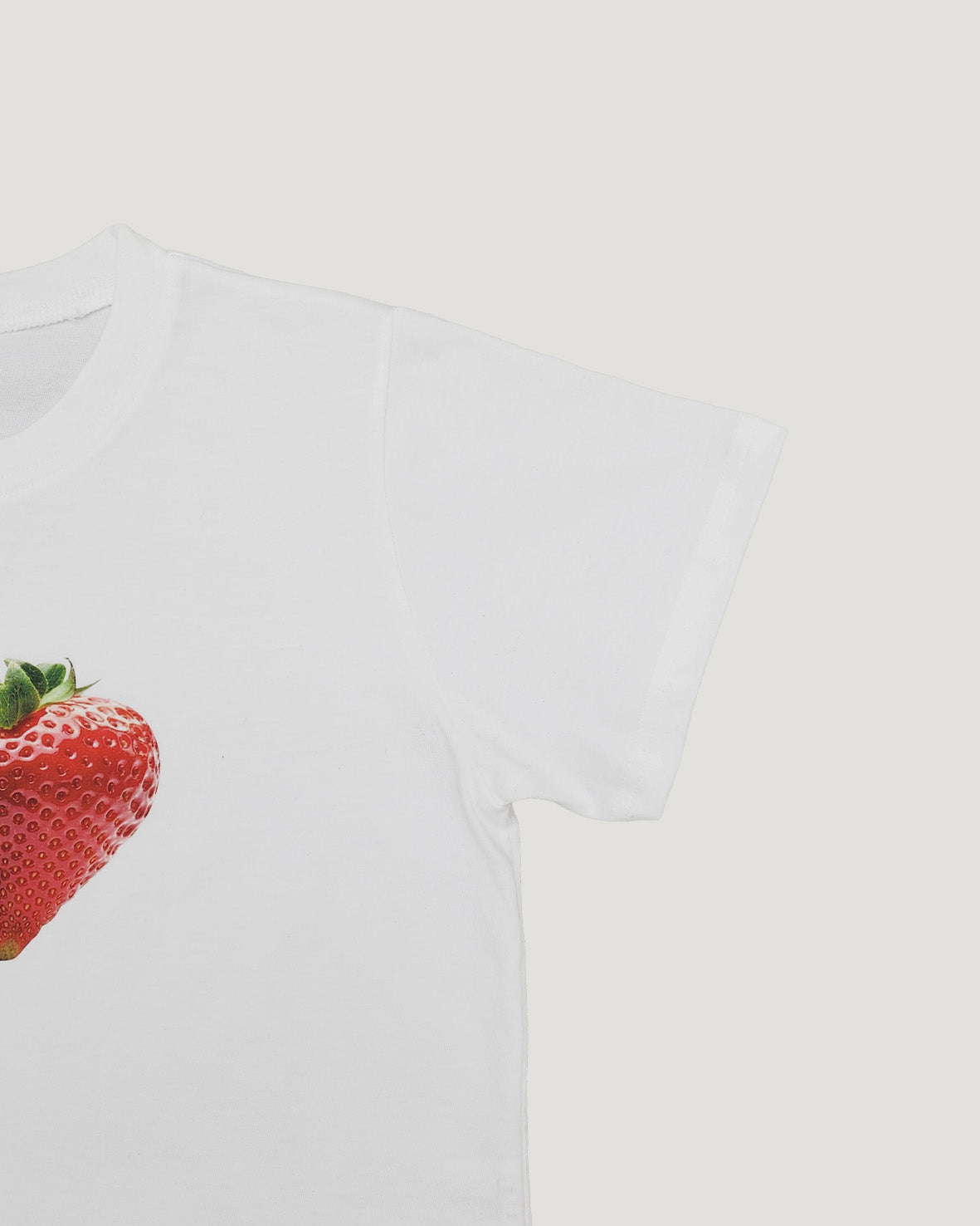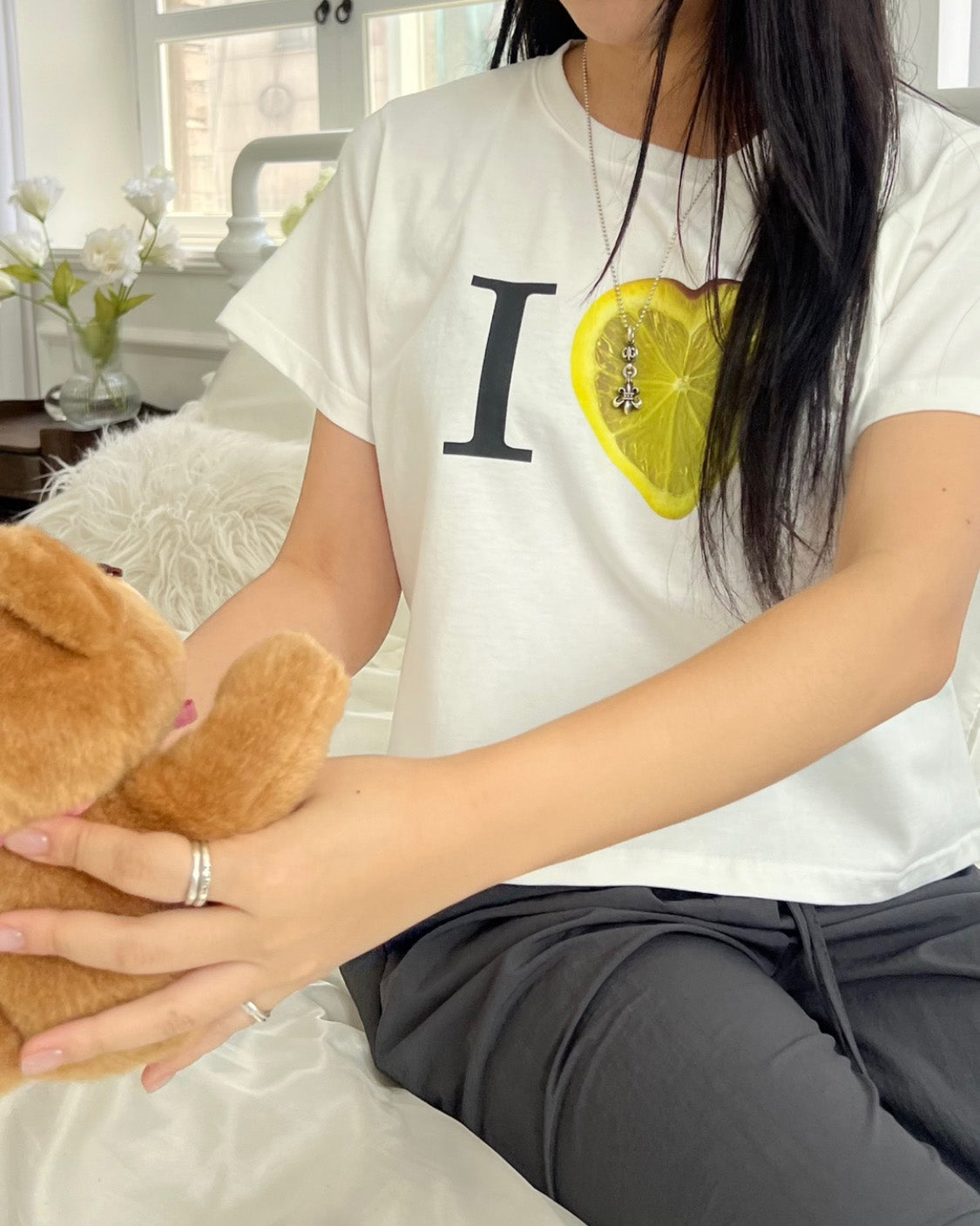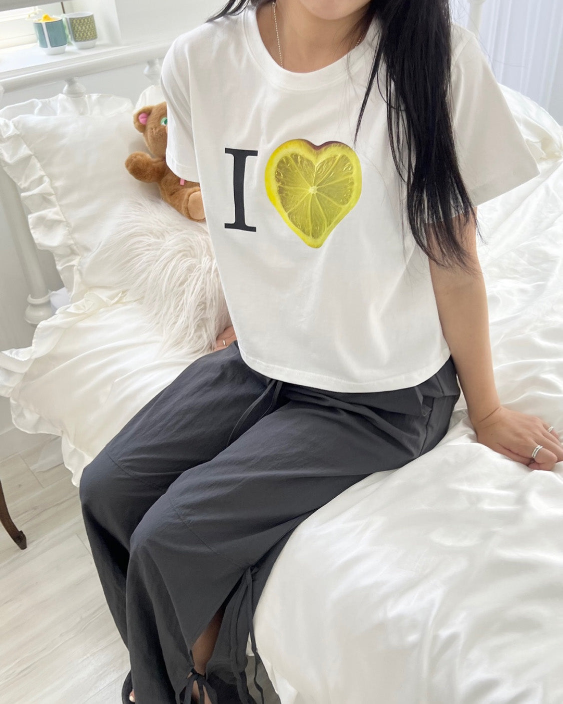 キャッチーなフルーツモチーフがポイントのTシャツ。