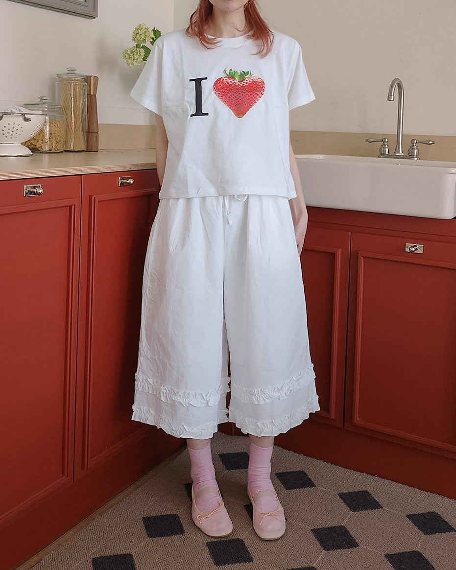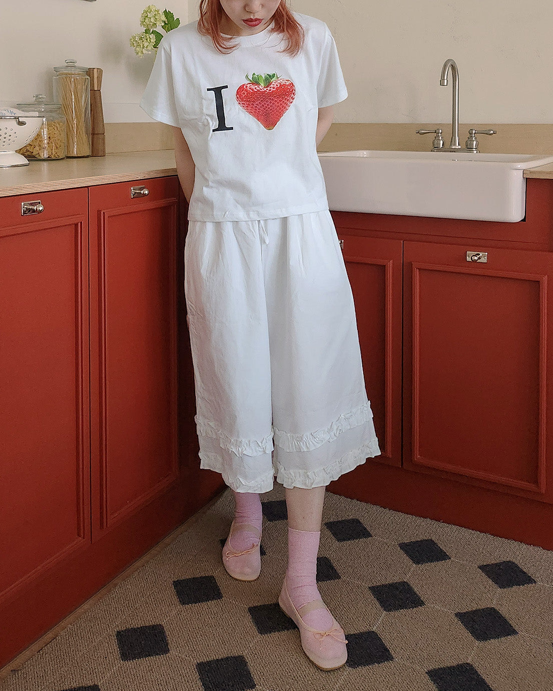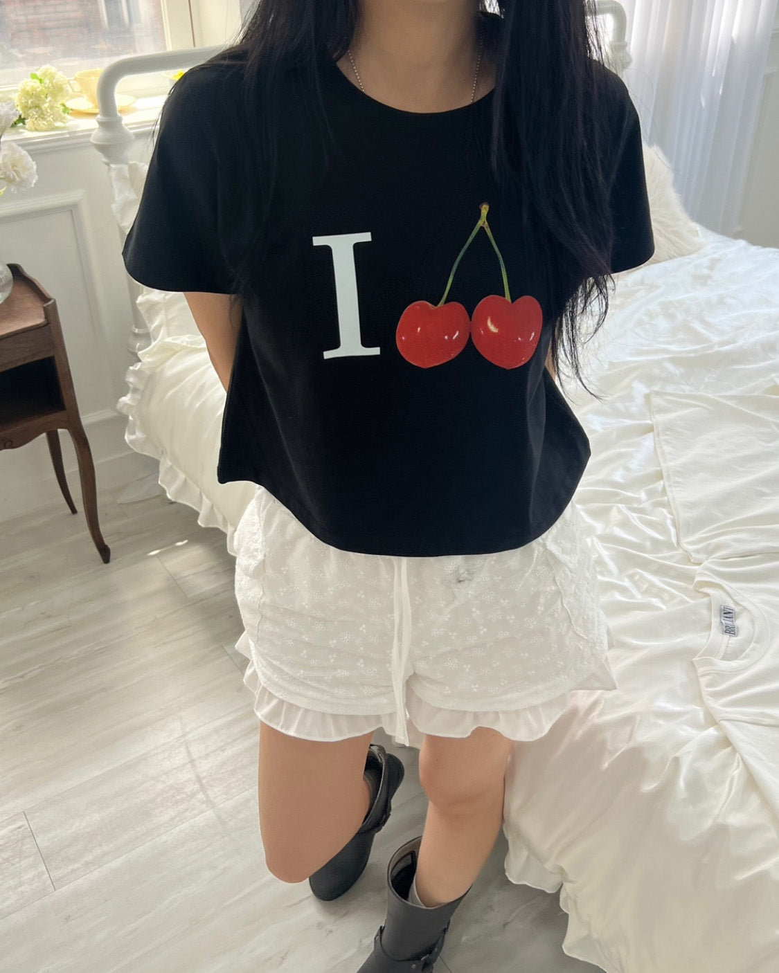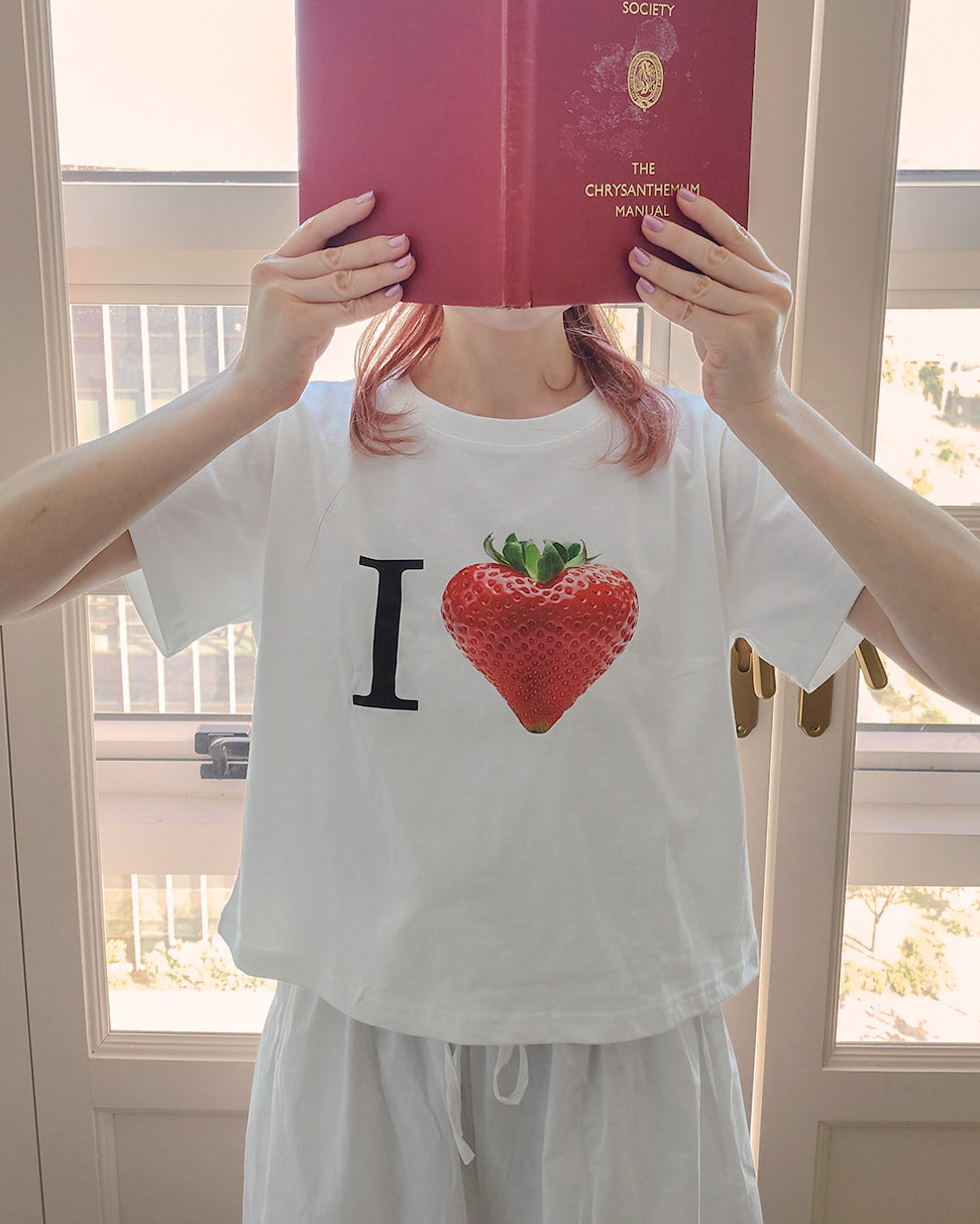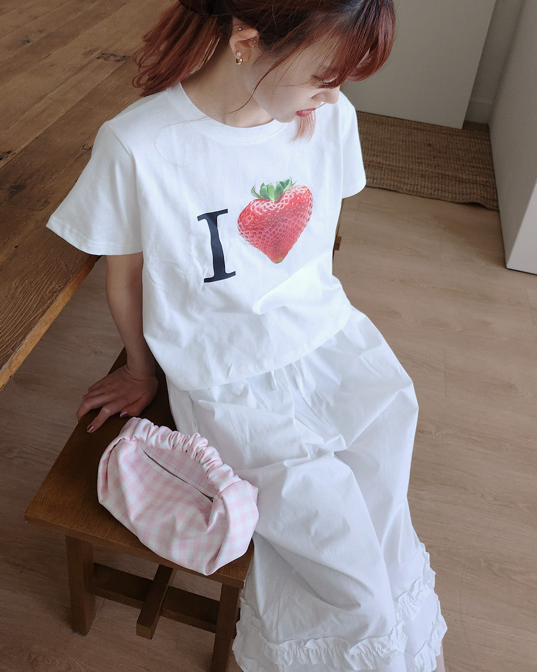 キャッチーなフルーツモチーフがポイントのTシャツ。