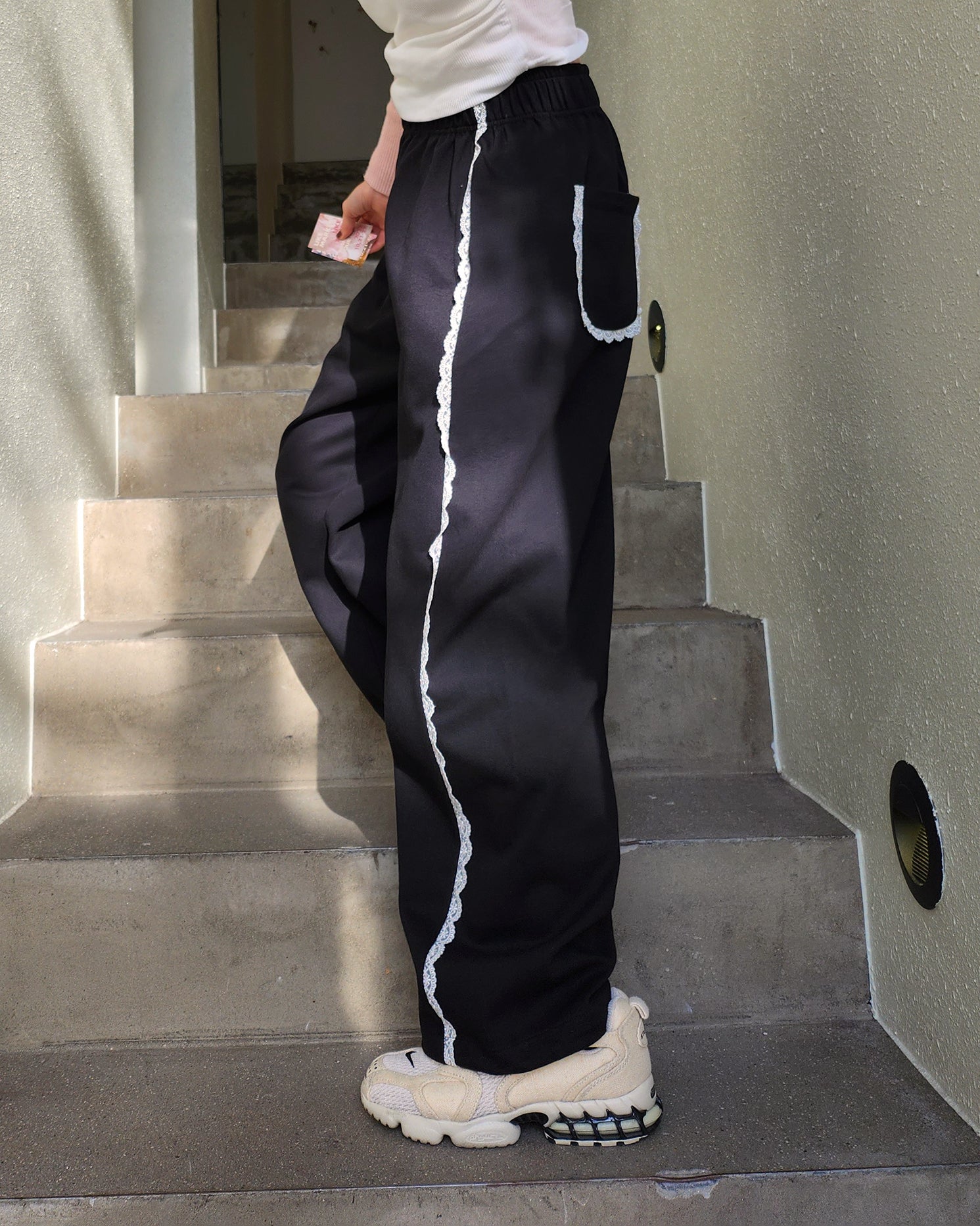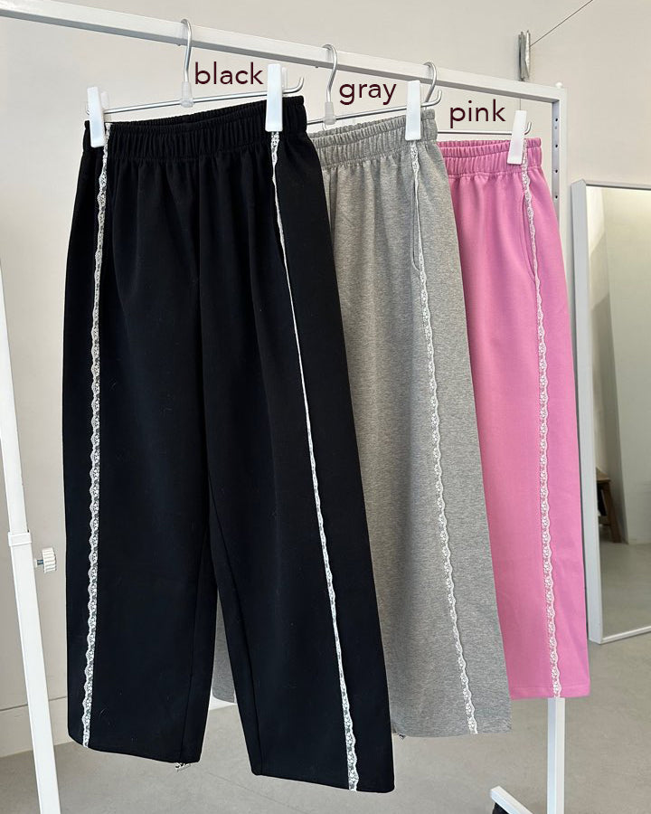 lace line sweat jogger pants