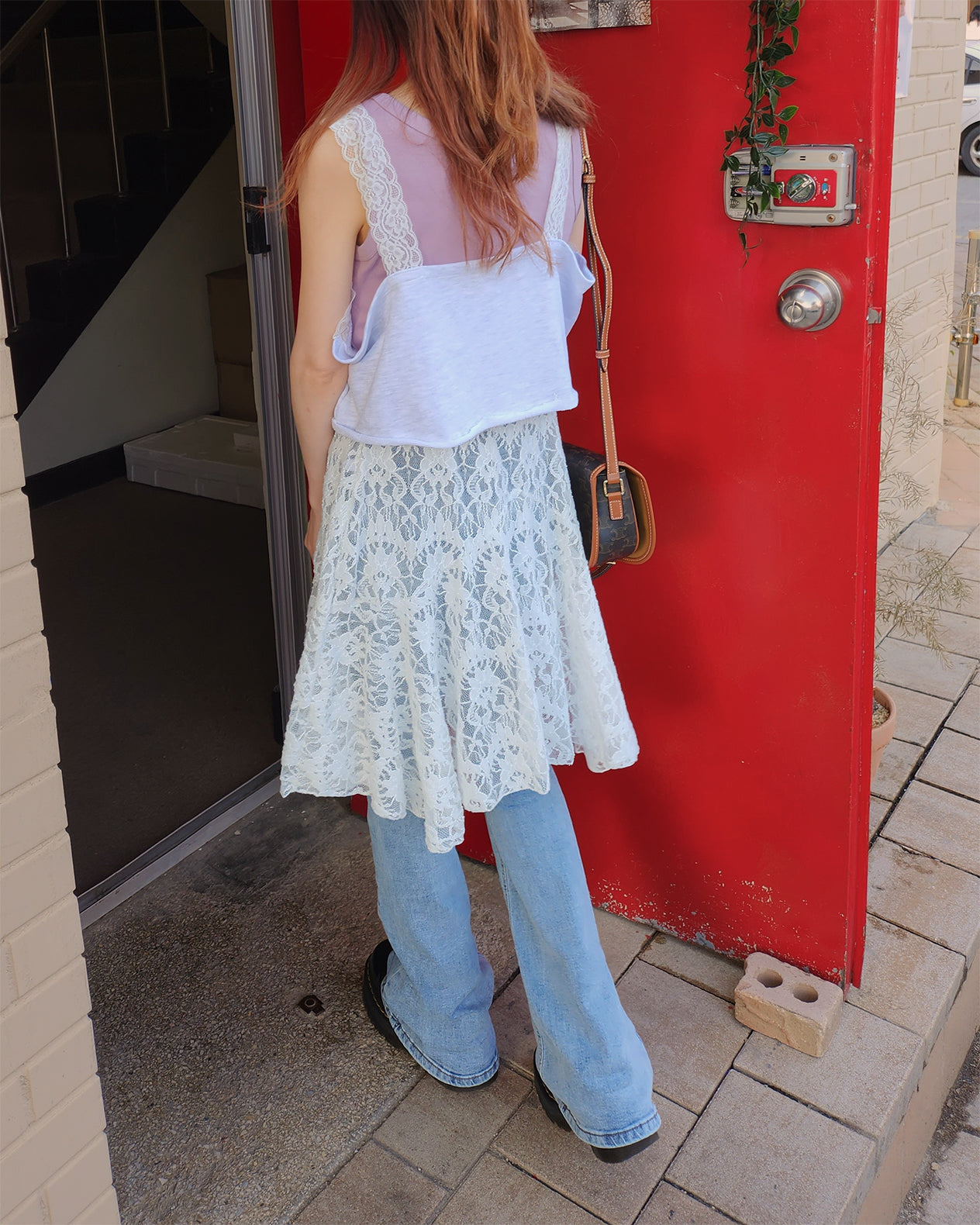Tシャツなどの上にレイヤードしたり、夏は中にタンクトップを合わせてノースリーブで着用するのもおすすめです。