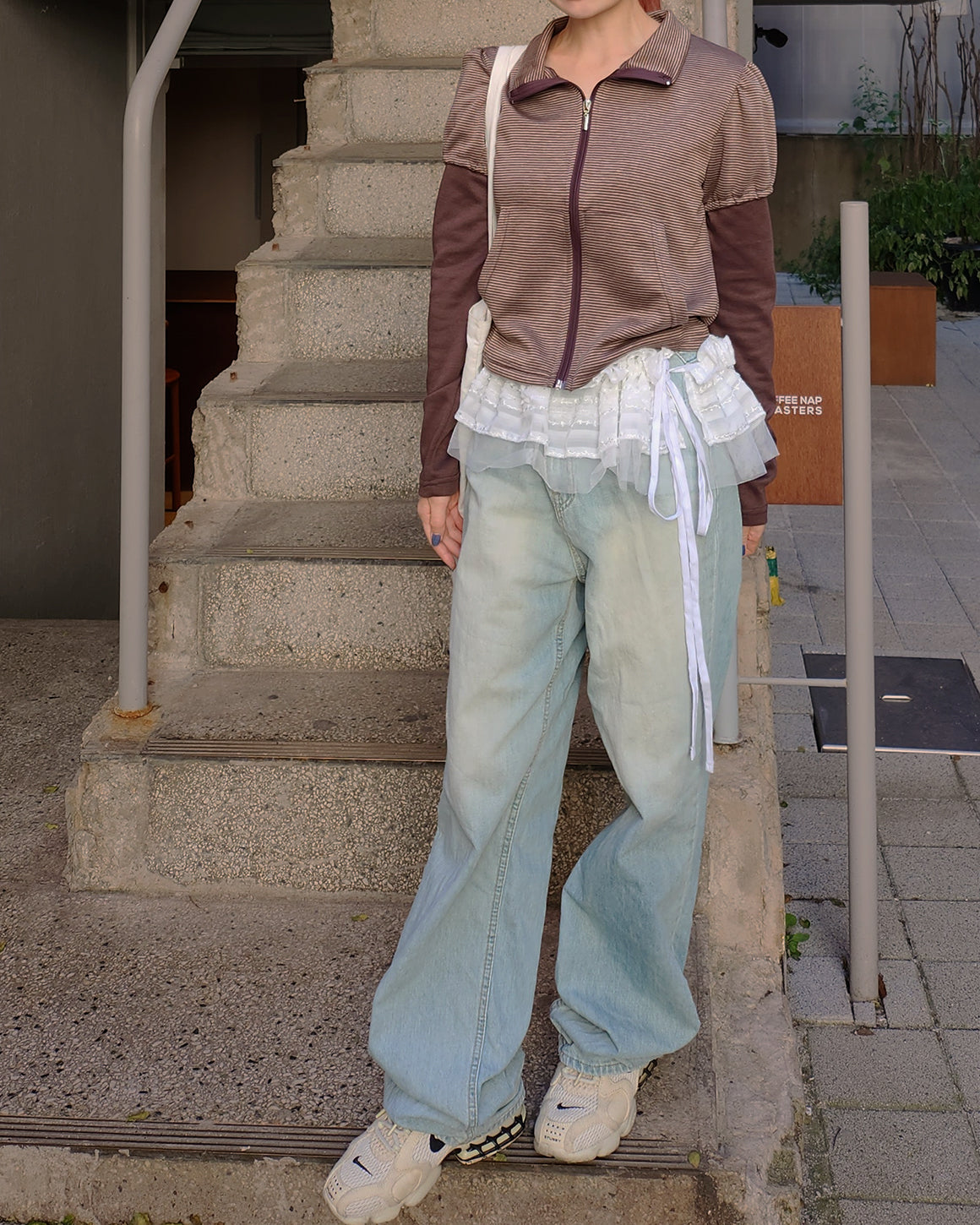 ジップを上まであげるとハイネックで着用したり、少し下げて襟風に着用したりコーディネートに合わせて様々な雰囲気を楽しめます。