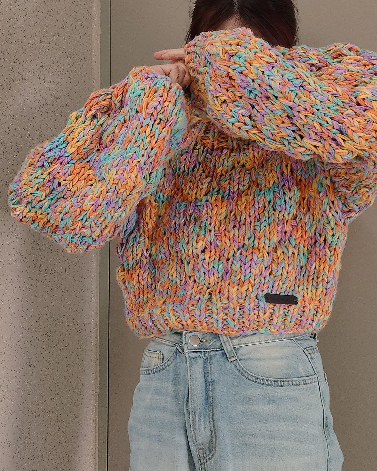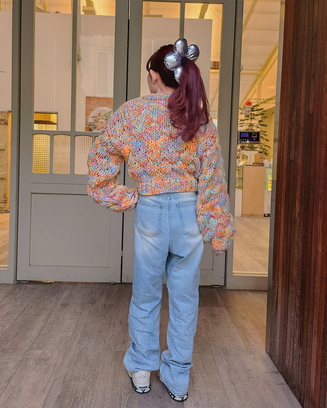 マルチカラーのMIX糸が魅力的なカラーリングでコーディネートの主役に。