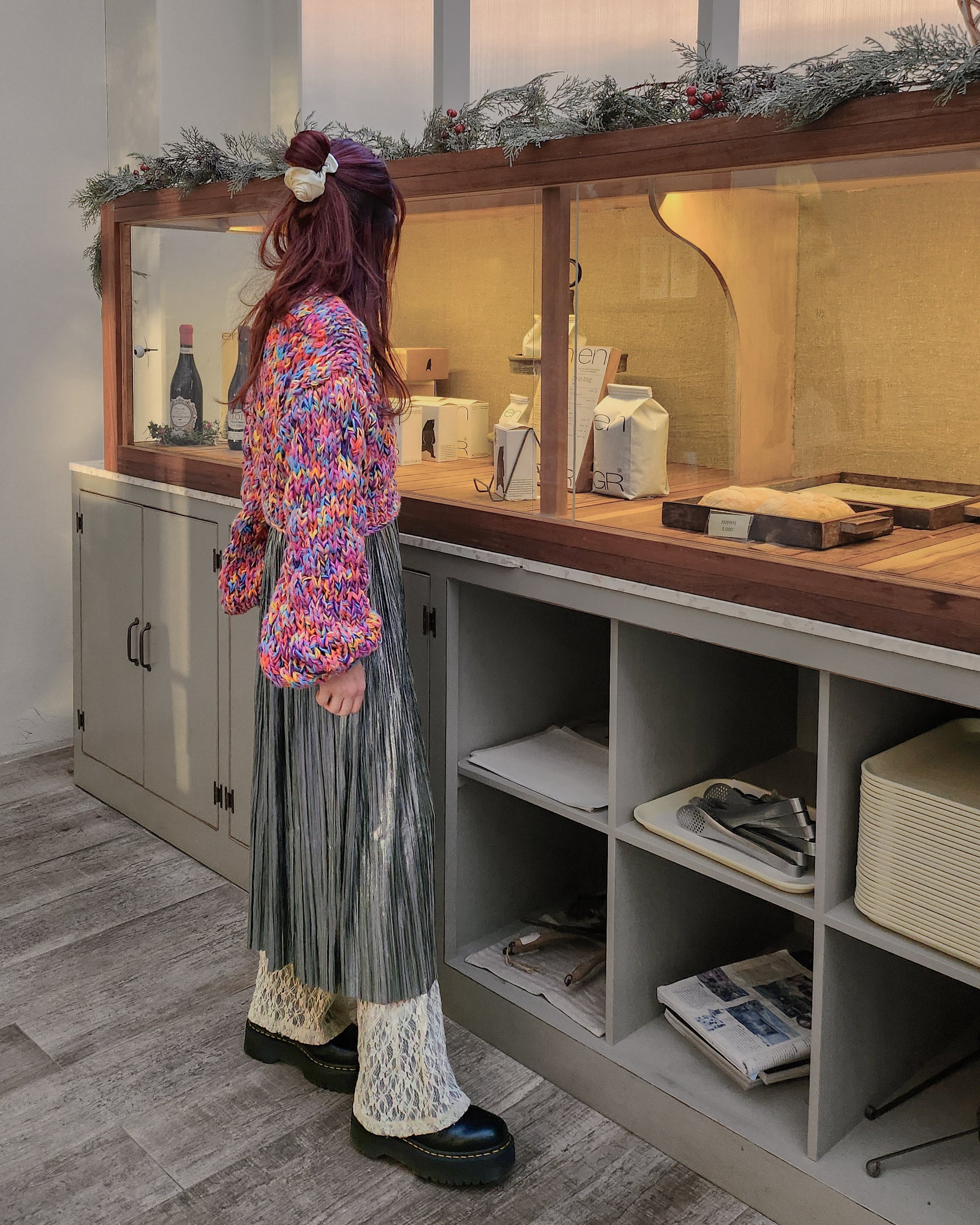 丁寧に編み上げられたボリューミーなハンドメイドニット。
