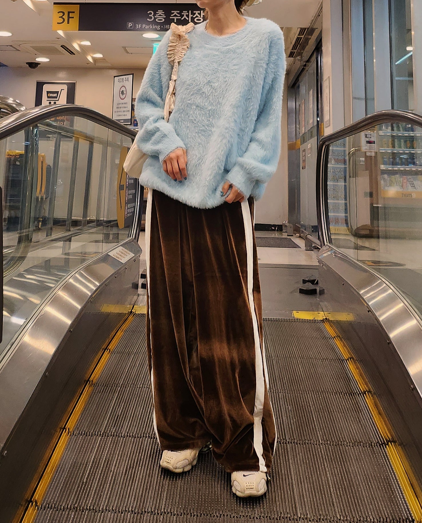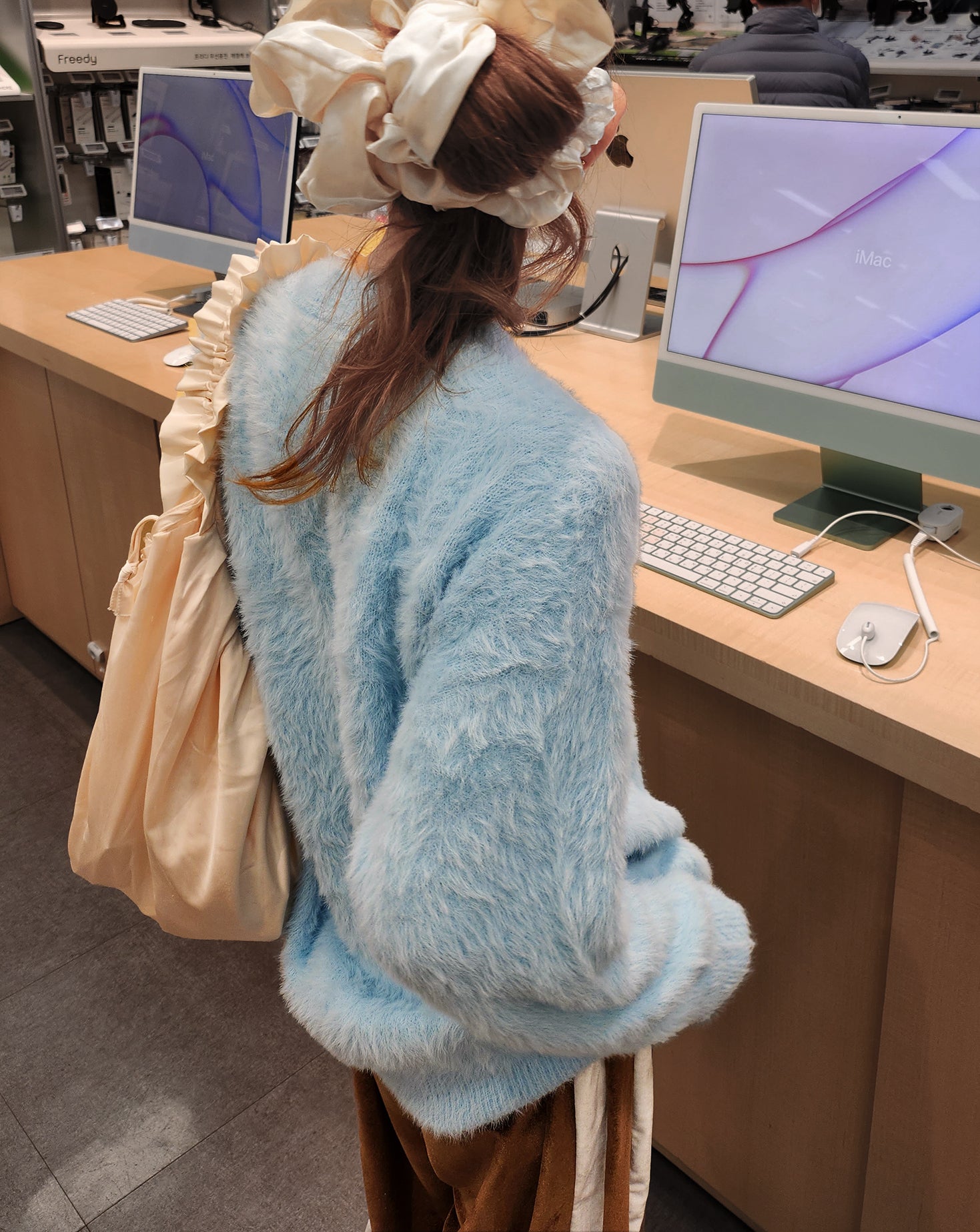ふわふわで毛足の長い糸を使用したアンゴラ風のニット。