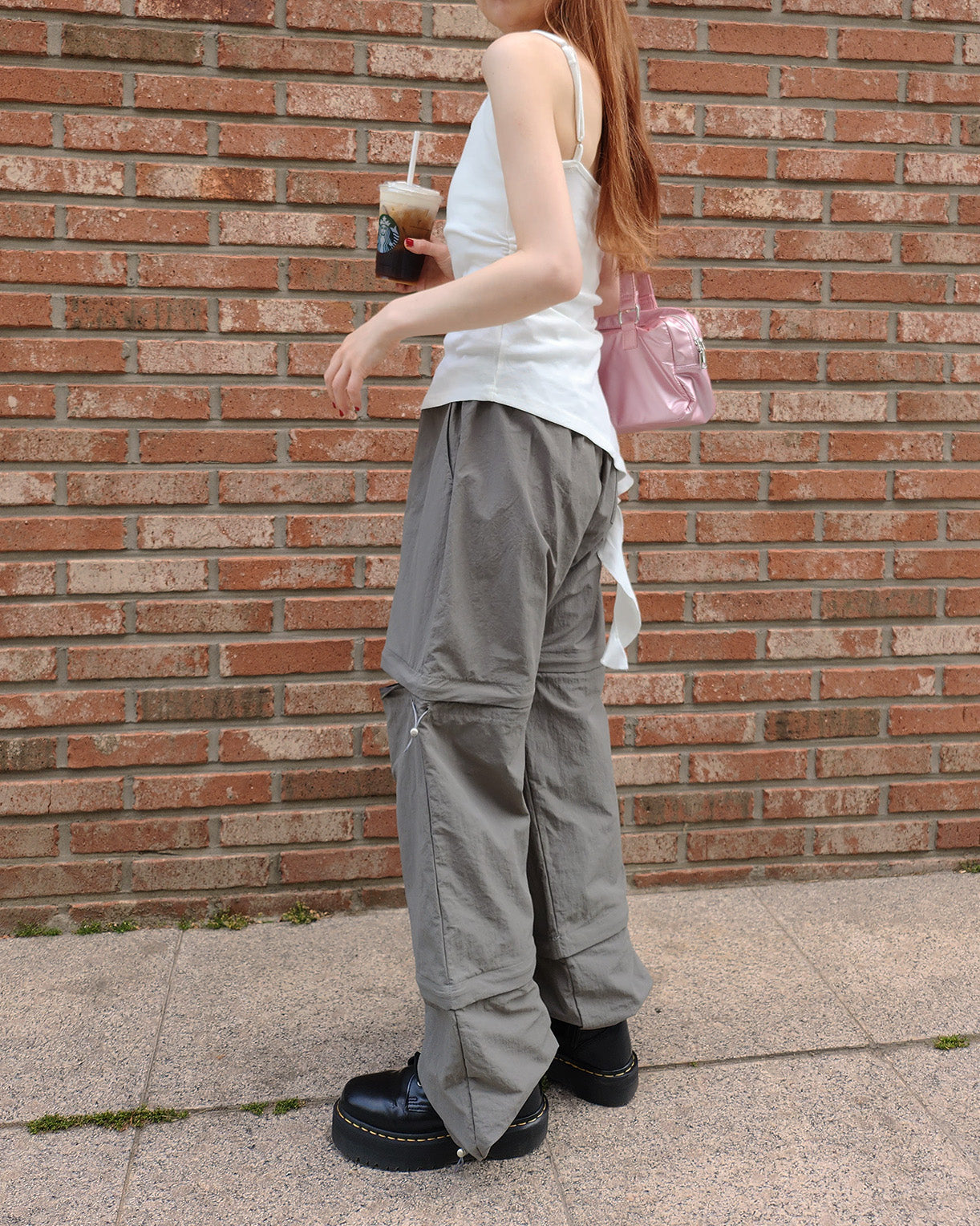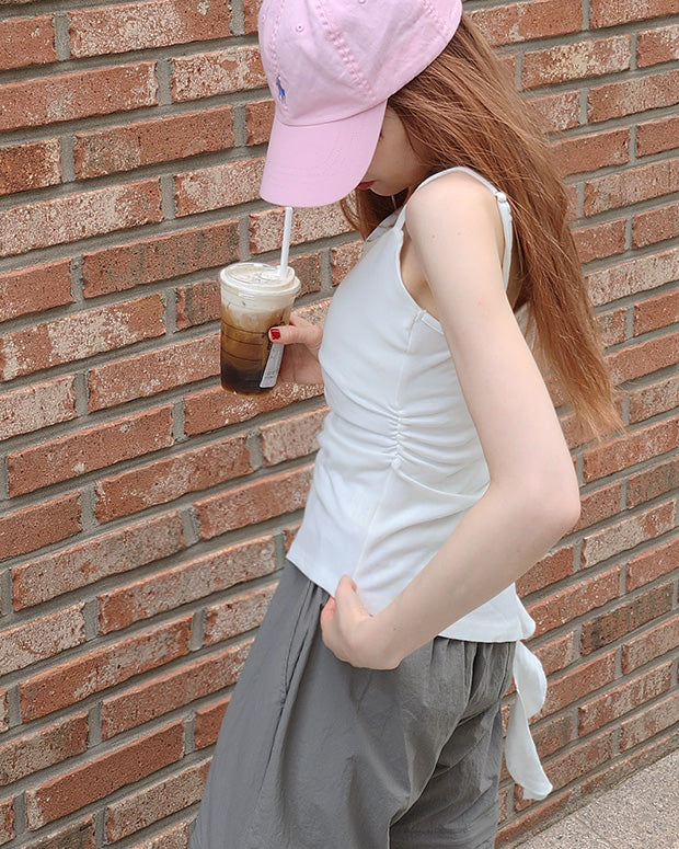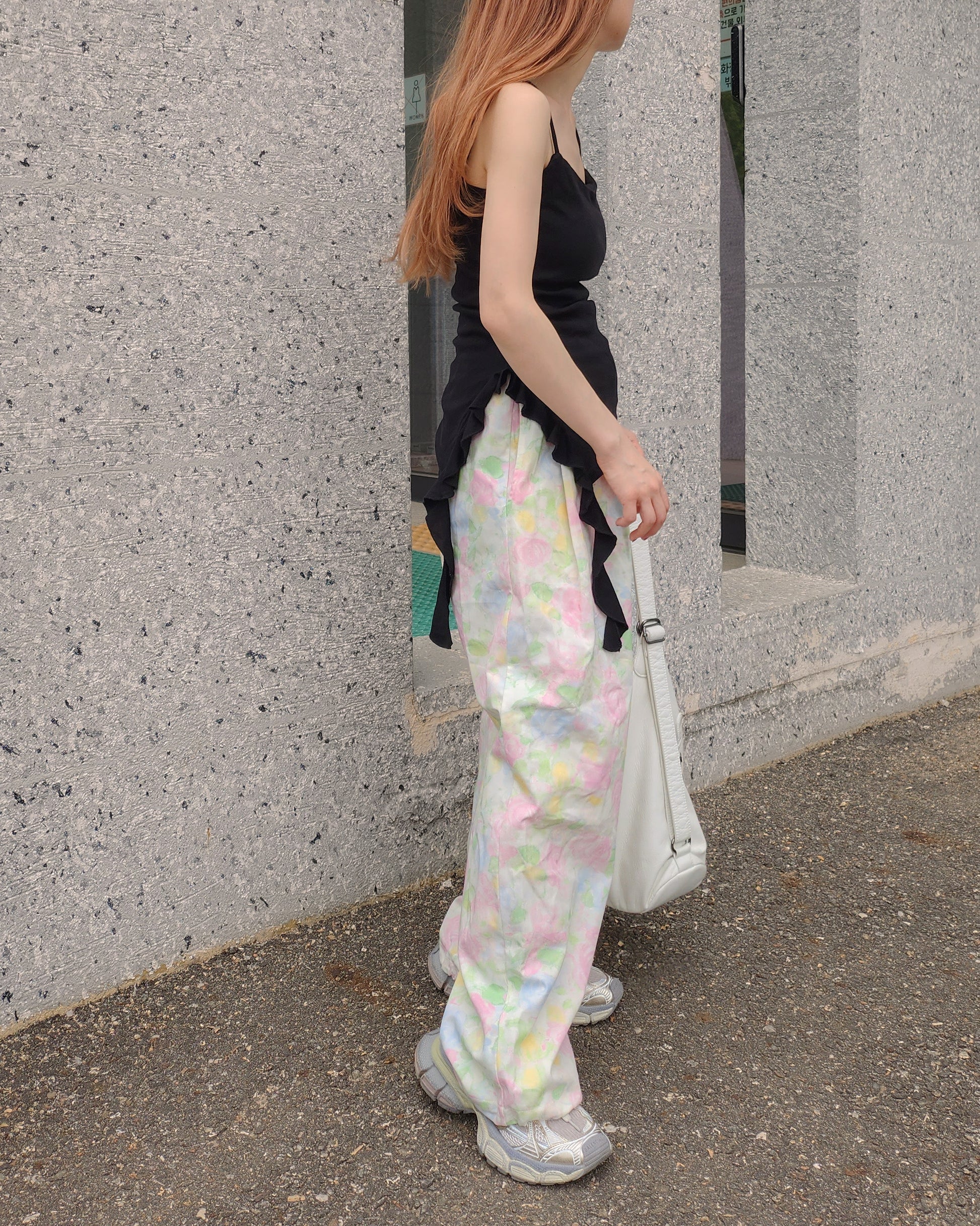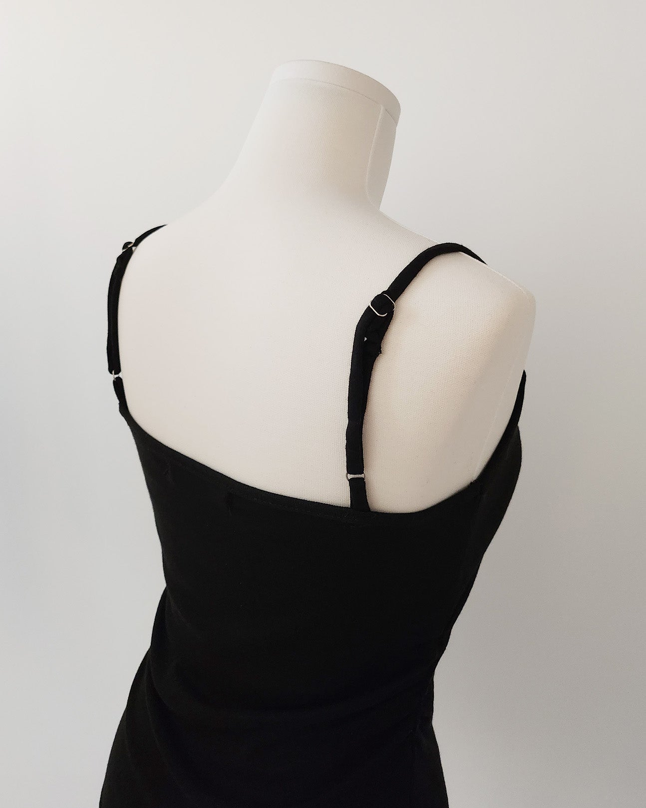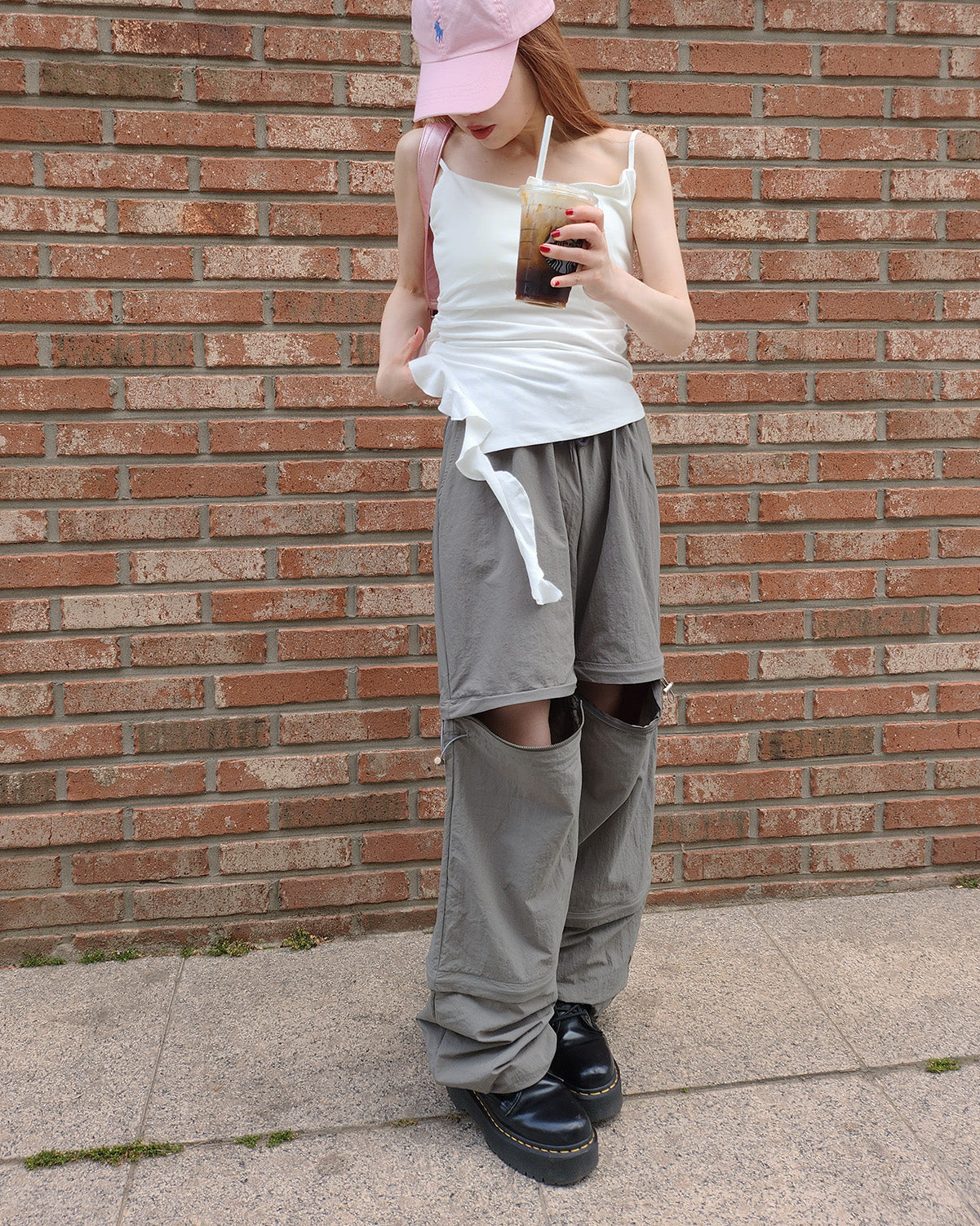 アシンメトリーな裾とフリルが特徴のキャミソール。