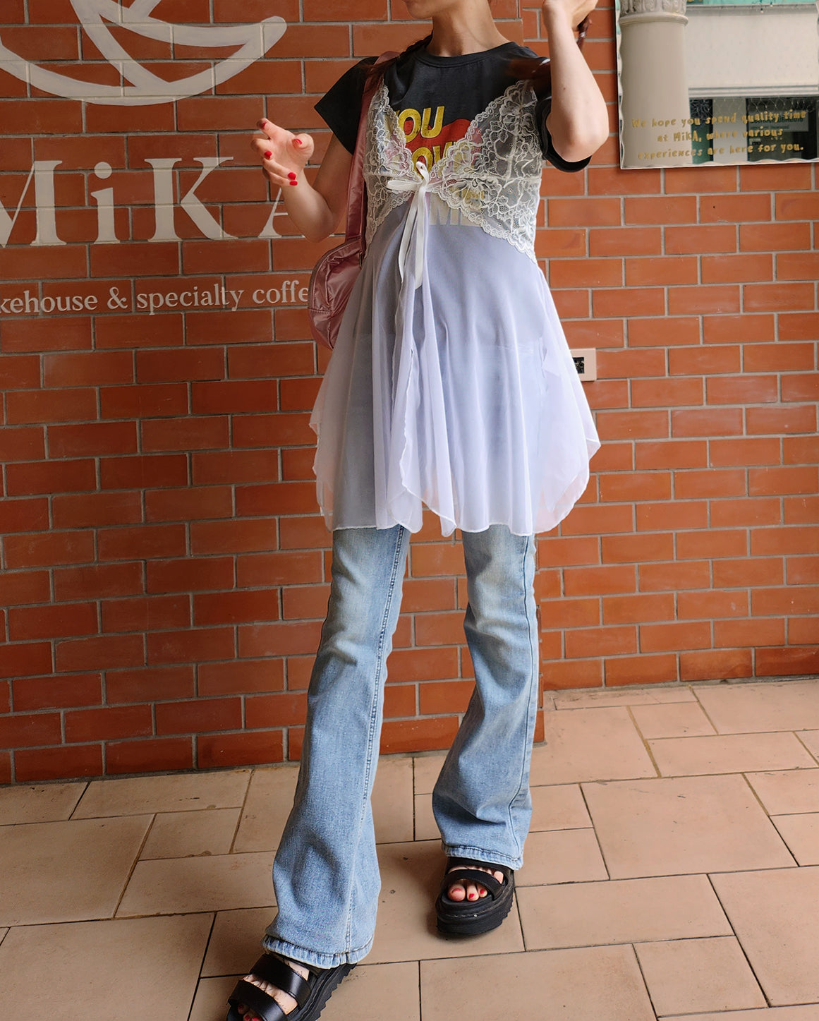 ガーリーなコーディネートはもちろん、ロックTなどに合わせてグランジっぽく着こなすのもおすすめです。