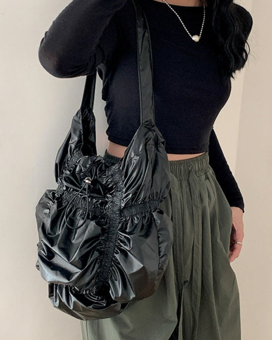 くしゅっとしたシャーリングデザインがお洒落な印象に。