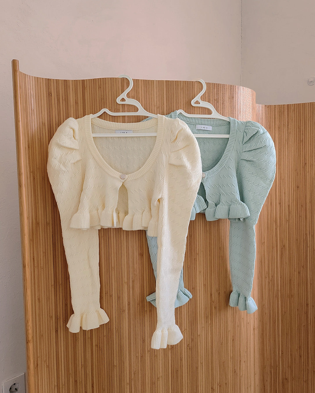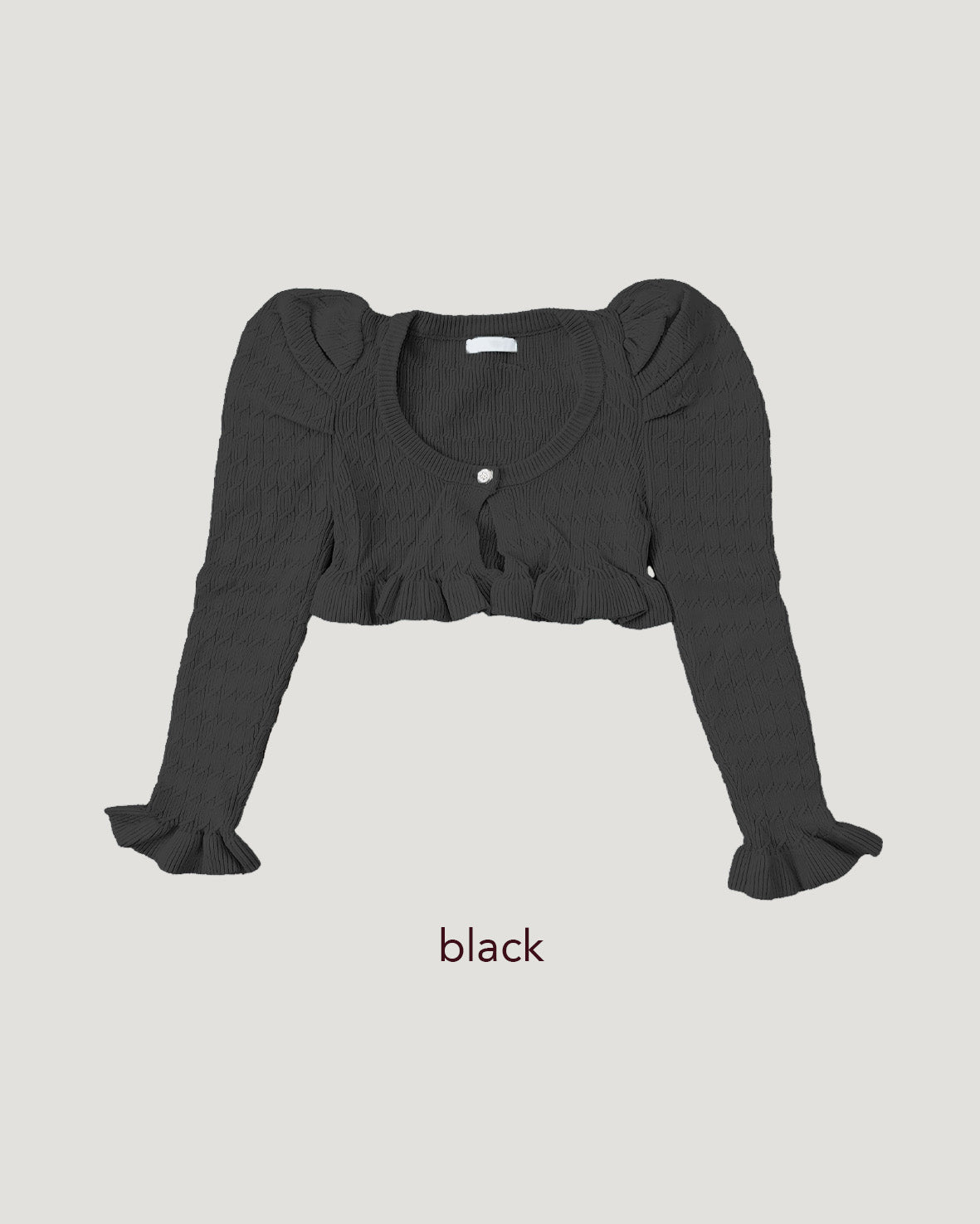 short puff sleeve frill knit cardigan