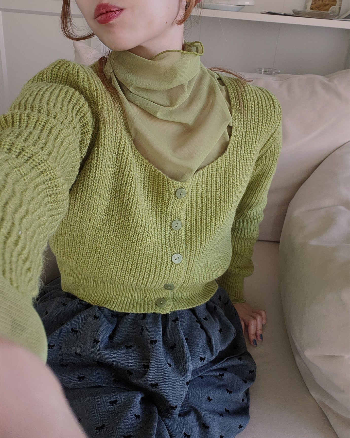 前を閉じてトップスとしても、開けてカーディガンとしても着られる万能デザイン。