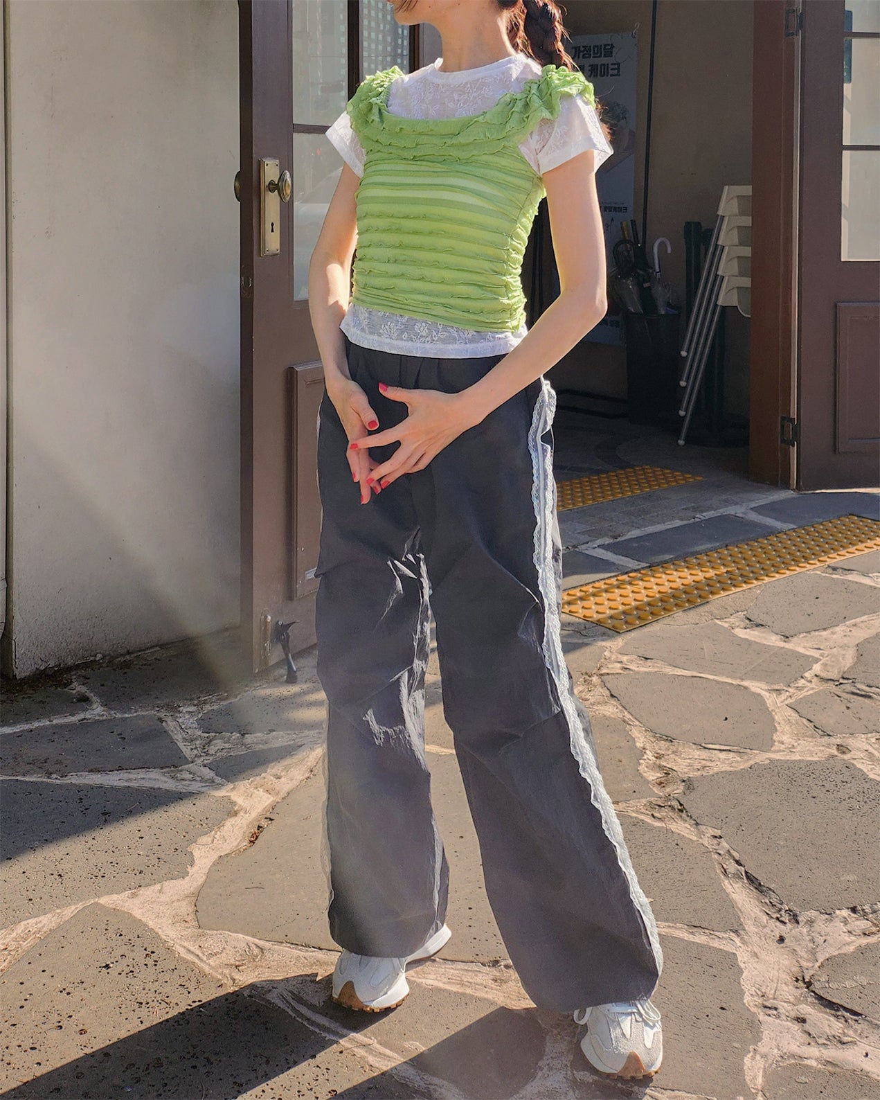 細かいティアードフリルが全面に施されたトップス。